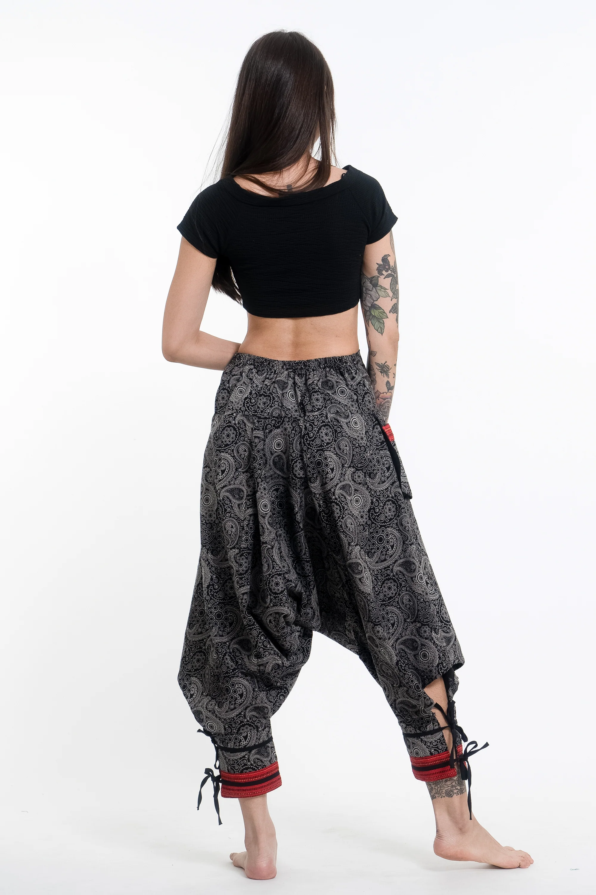Paisley Thai Hill Tribe Fabric Women’s Harem Pants with Ankle Straps