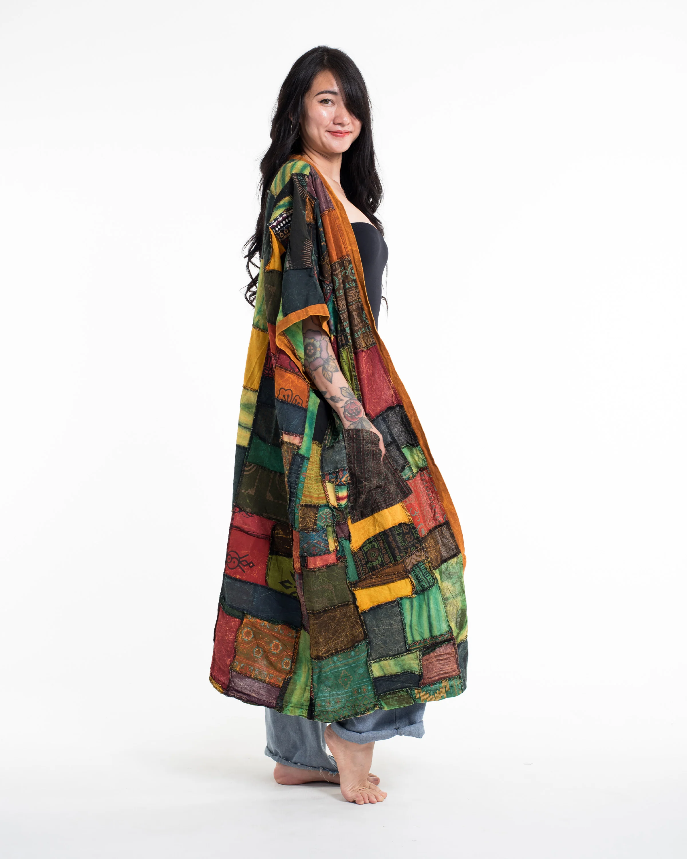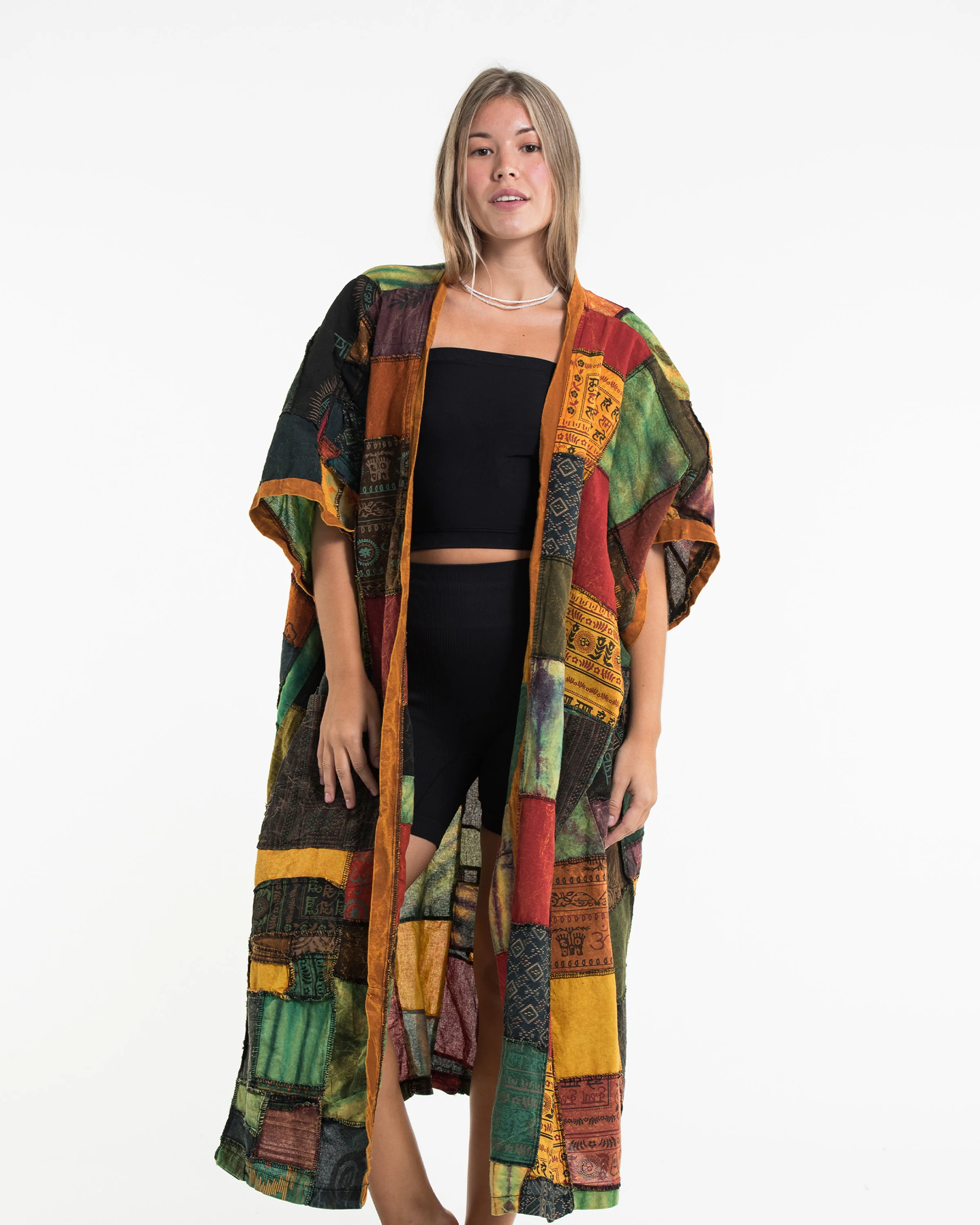 This eye-catching long kimono robe is perfectly handcrafted Indian patchwork stone washed cotton.