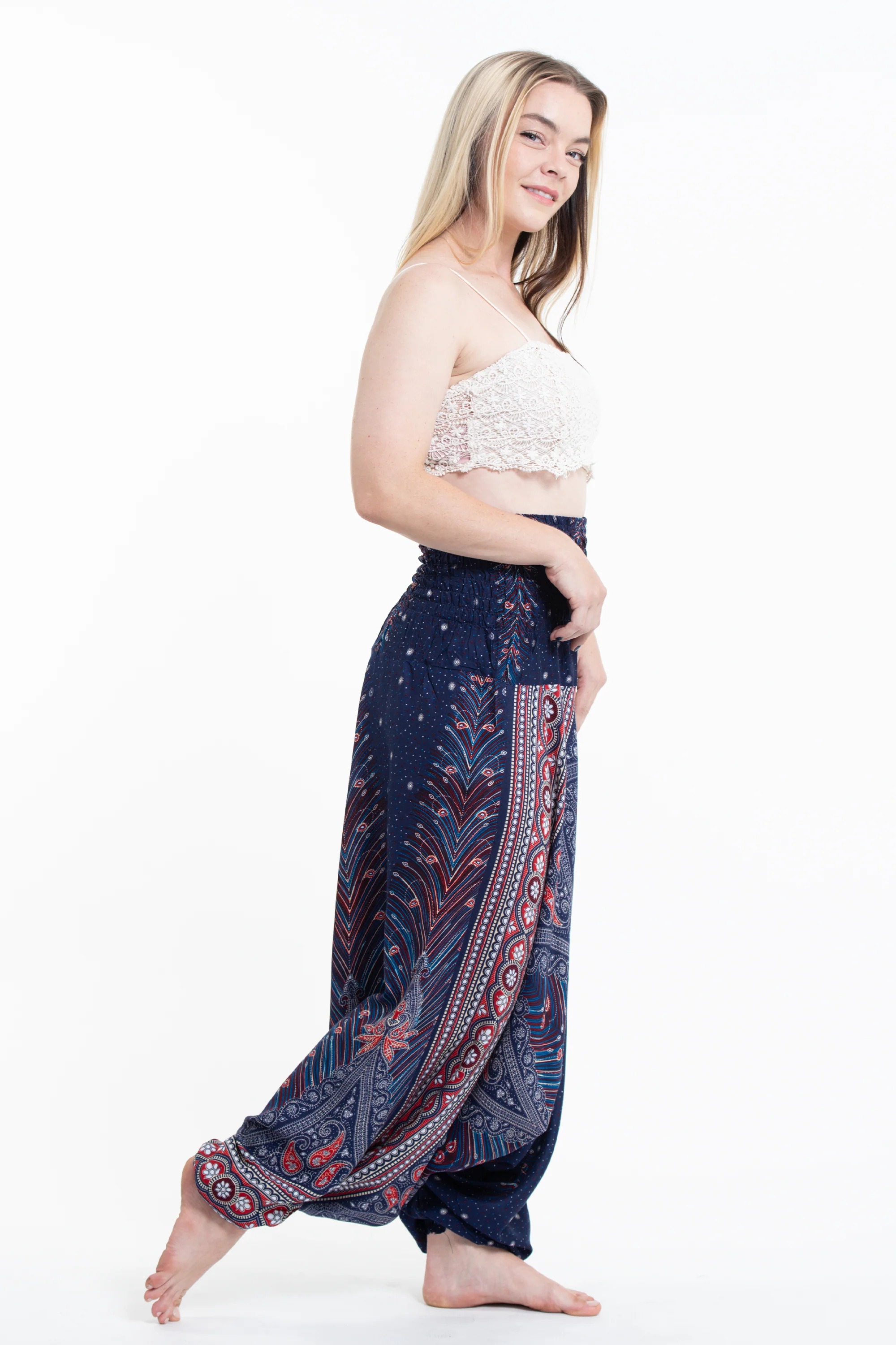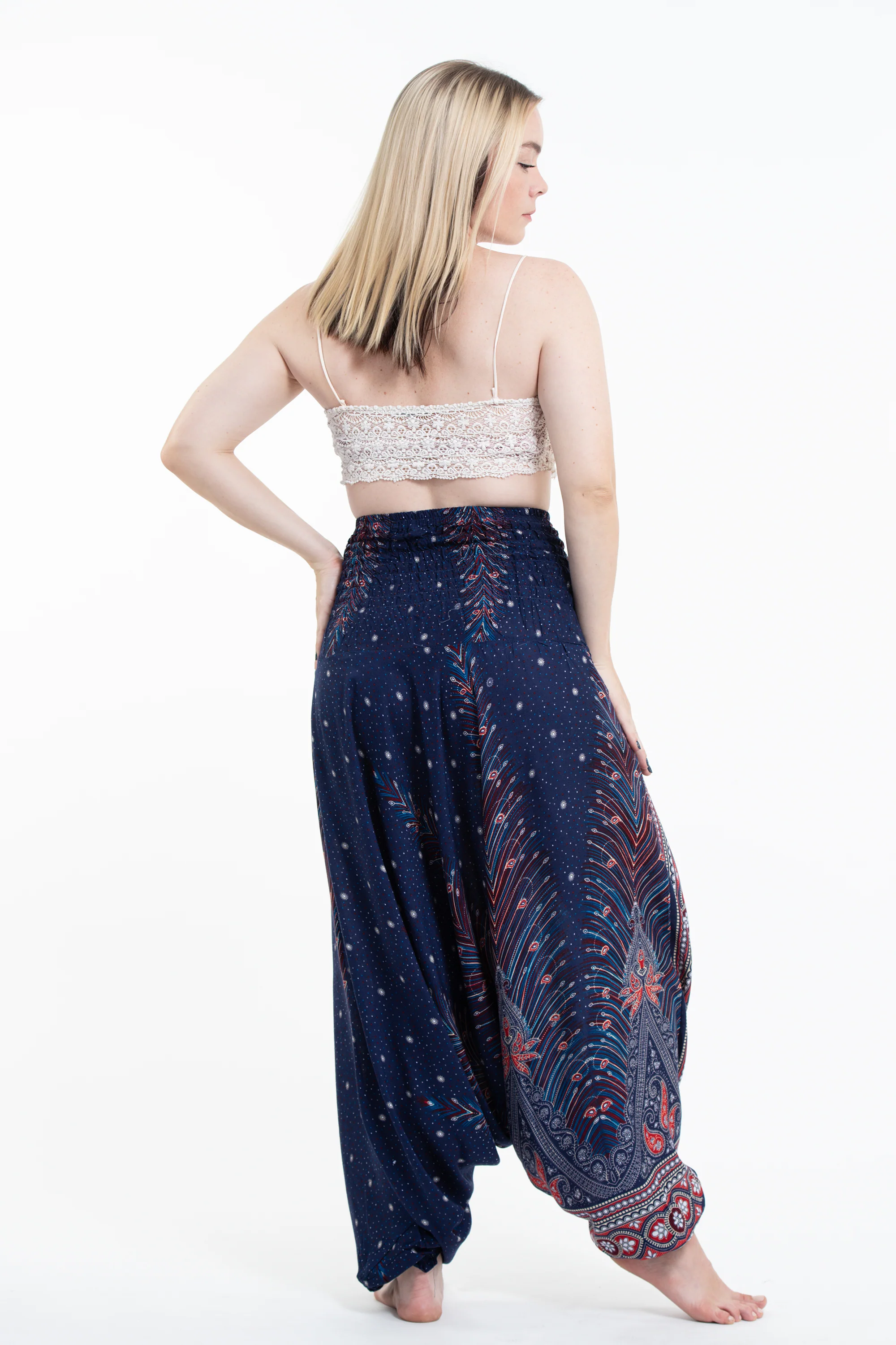 Peacock Feathers 2-in-1 Jumpsuit Harem Pants in Blue