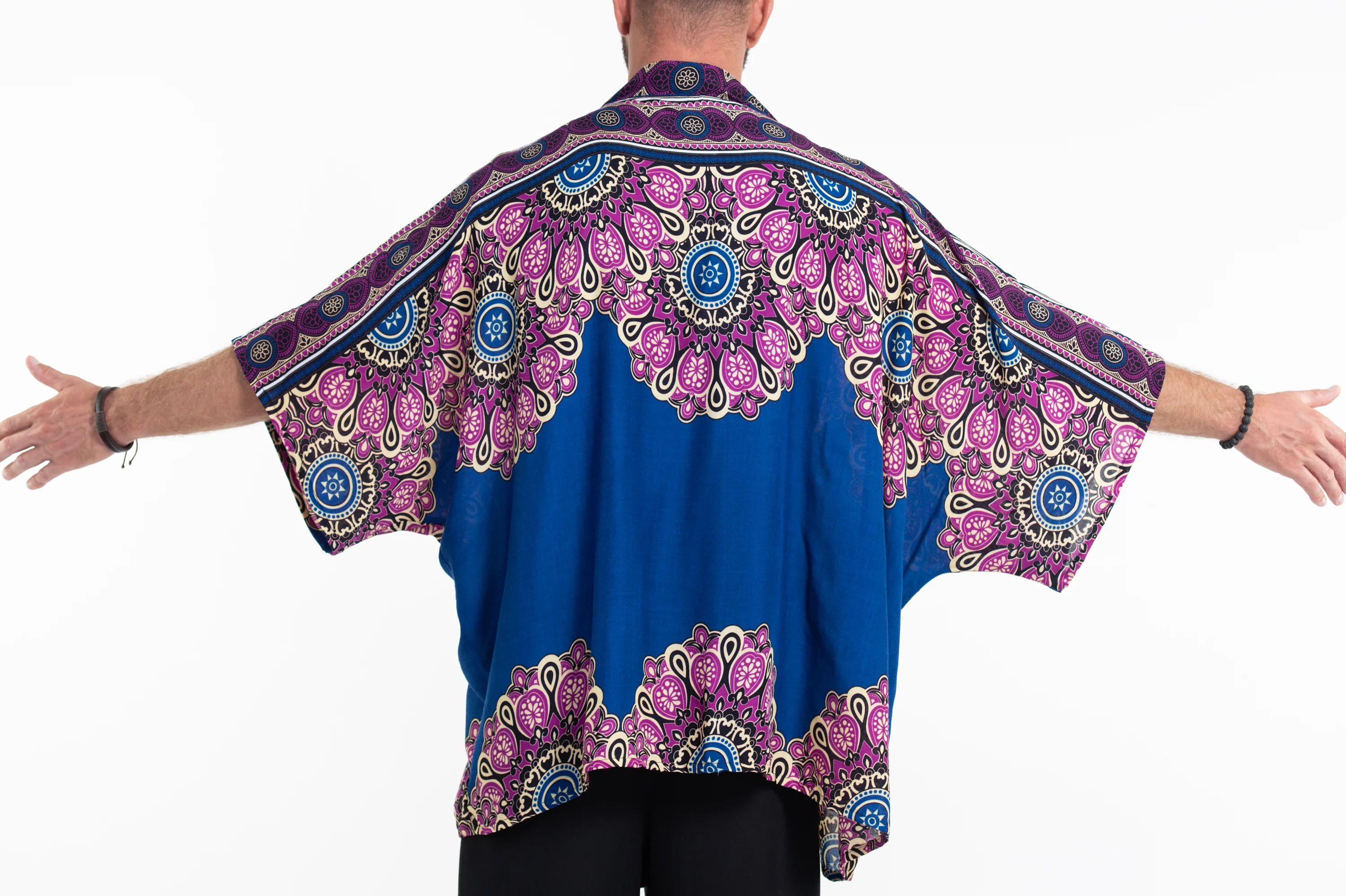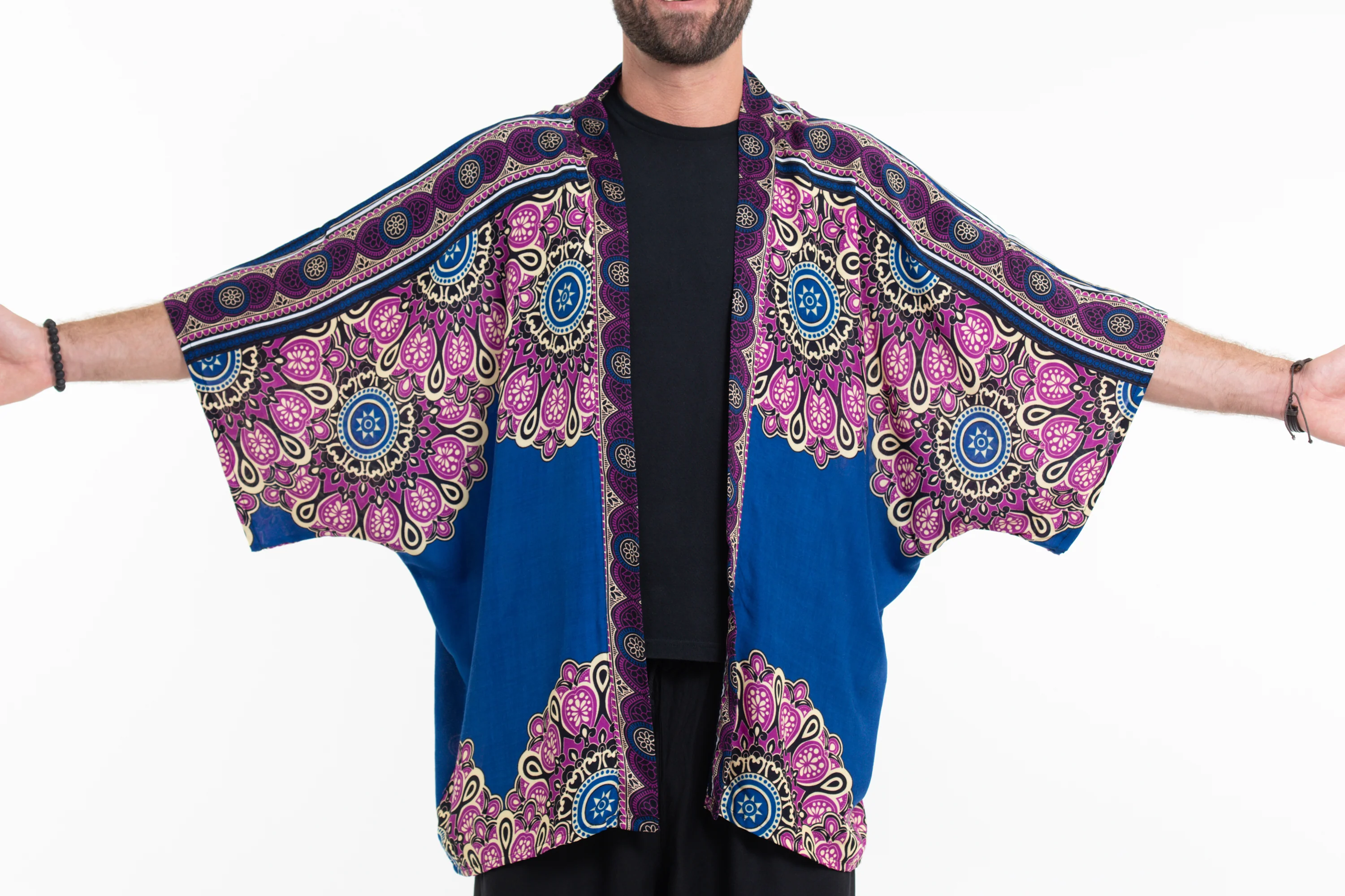 Peony Mandalas Kimono Cardigan in Blue