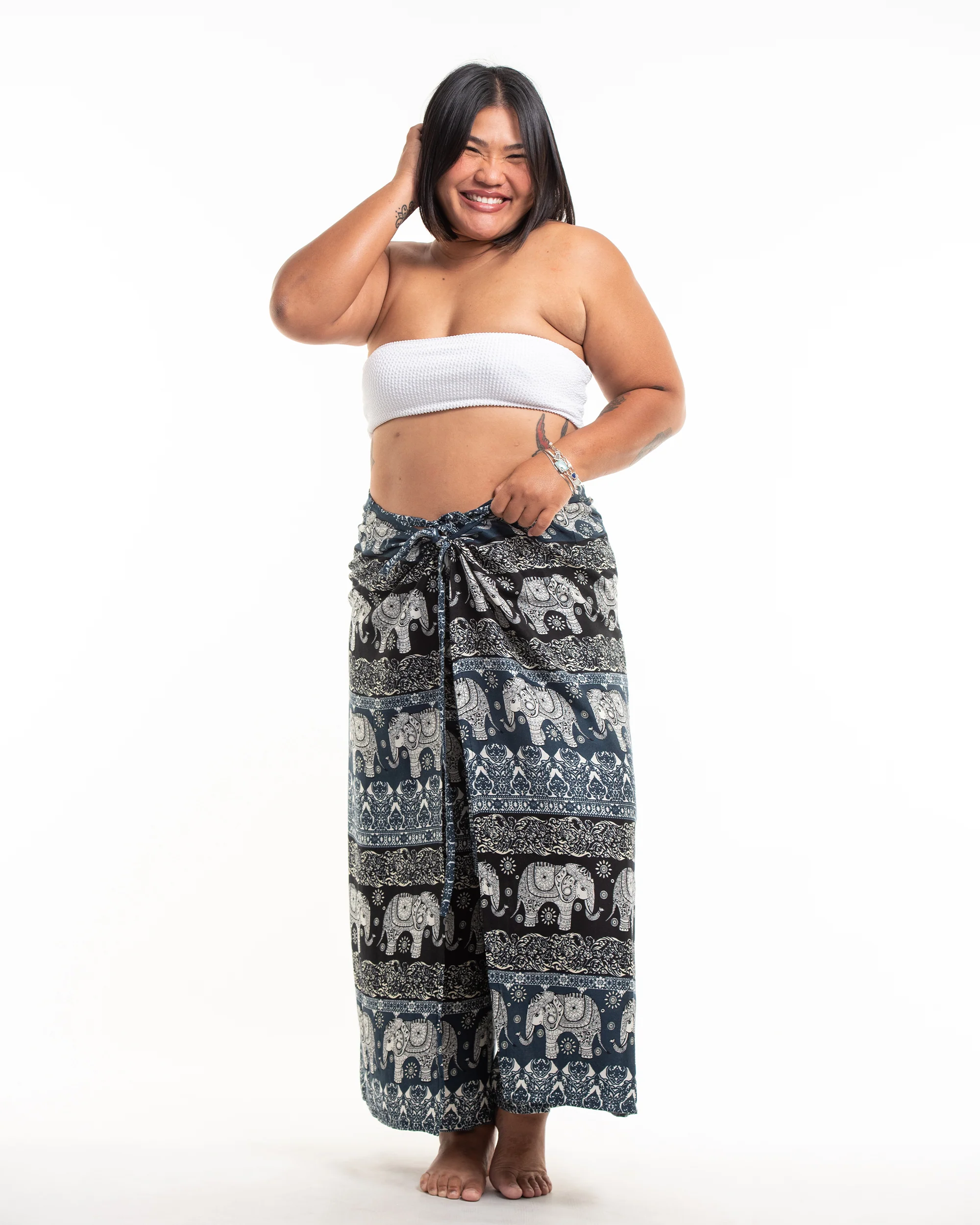 - Waist: 48-60″ (A smaller waist gives a different style with more wrapping fabric and a side or a back knot.)