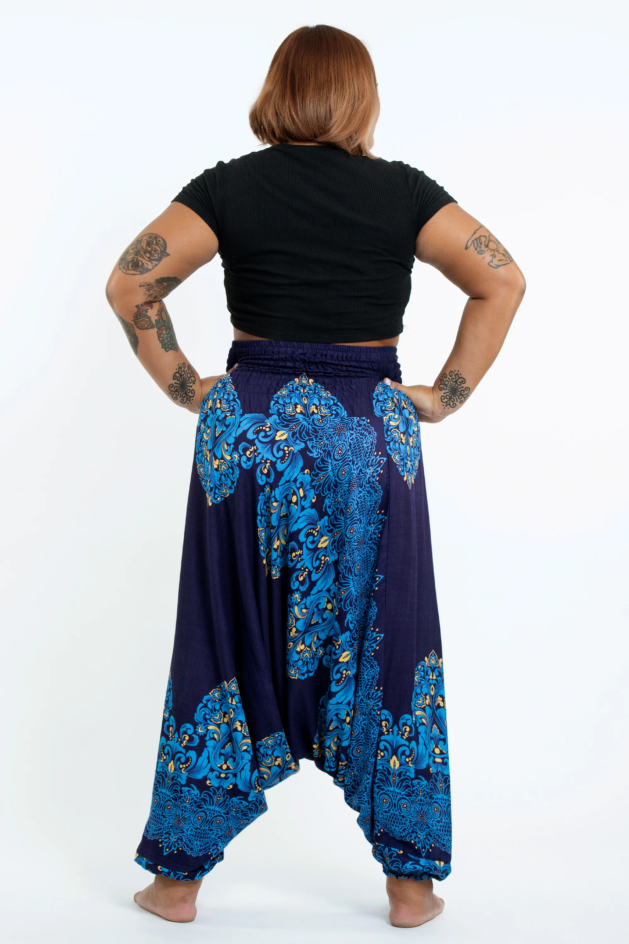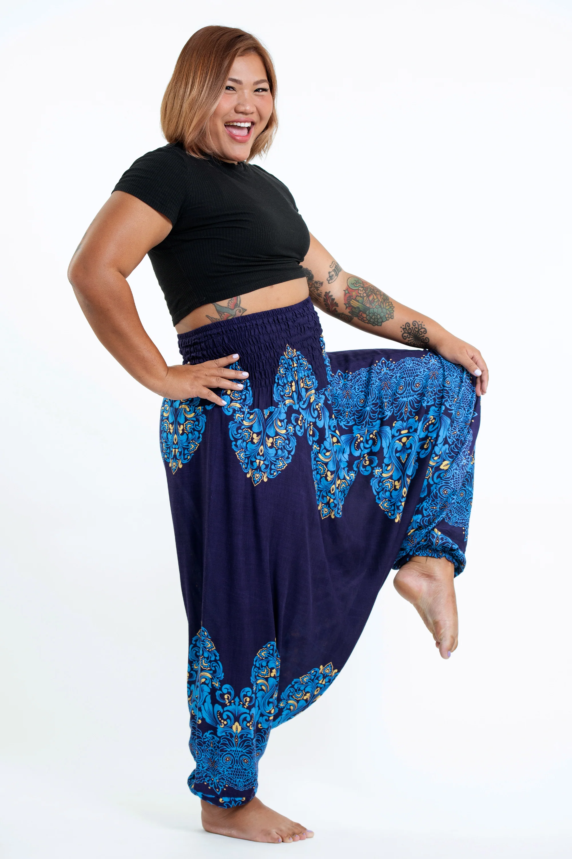 Plus Size Floral Vines 2-in-1 Jumpsuit Harem Pants in Blue