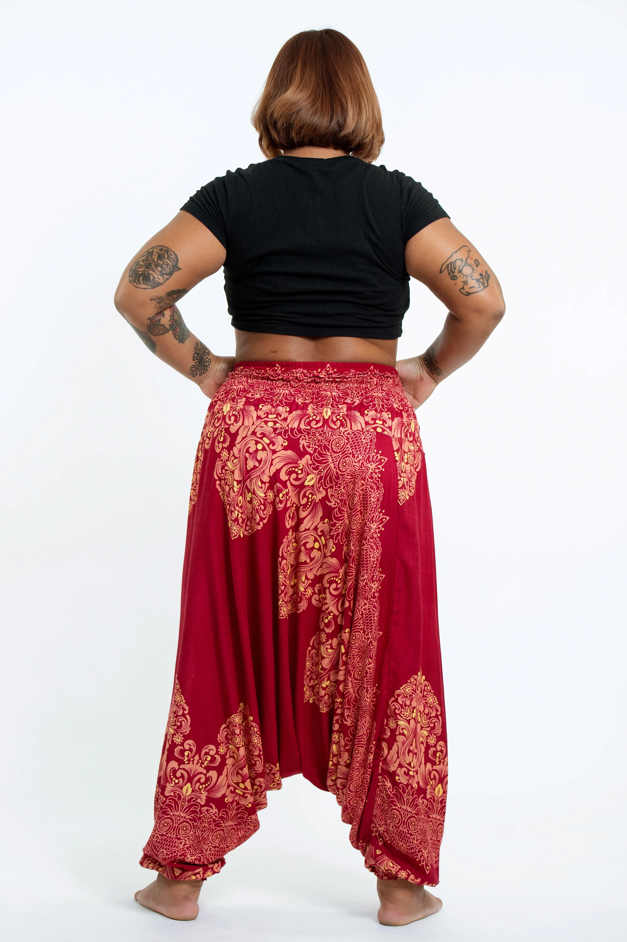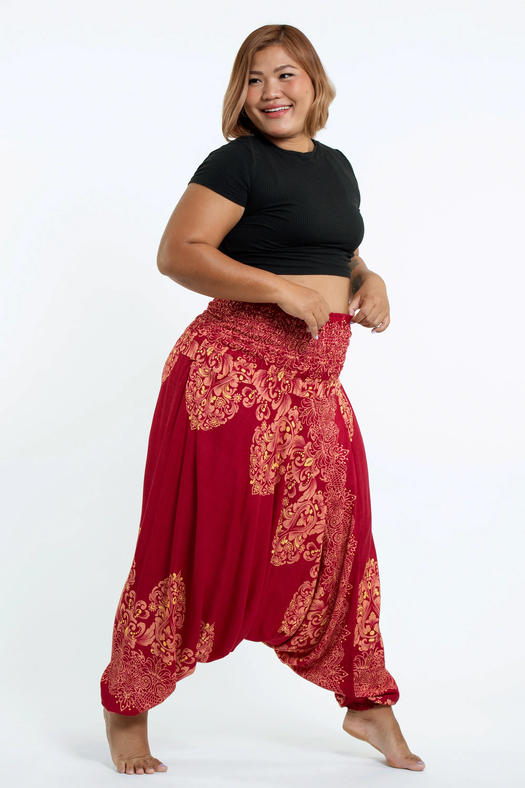 Plus Size Floral Vines 2-in-1 Jumpsuit Harem Pants in Red