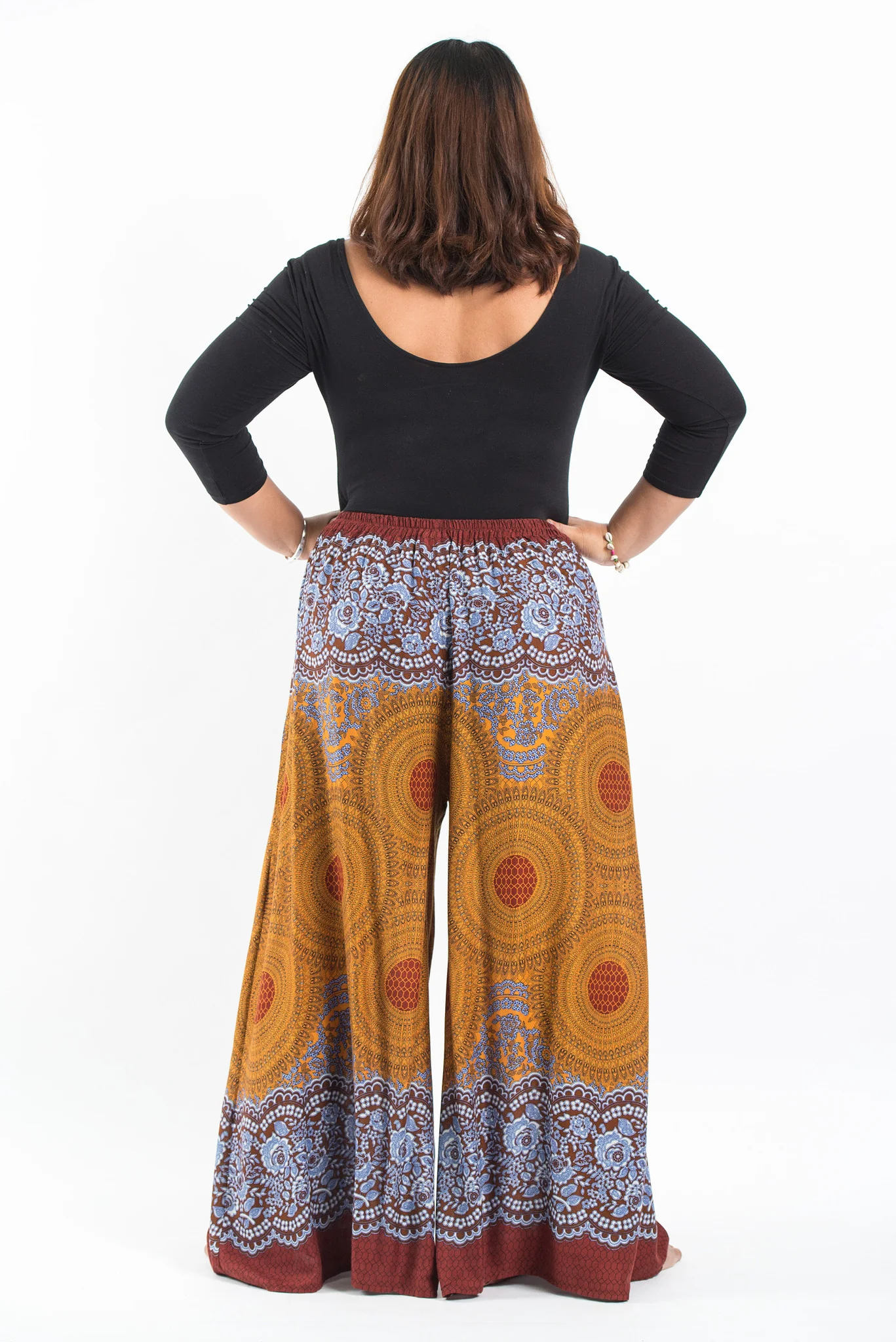Plus Size Geometric Mandalas Palazzo Style Harem Pants in Bronze