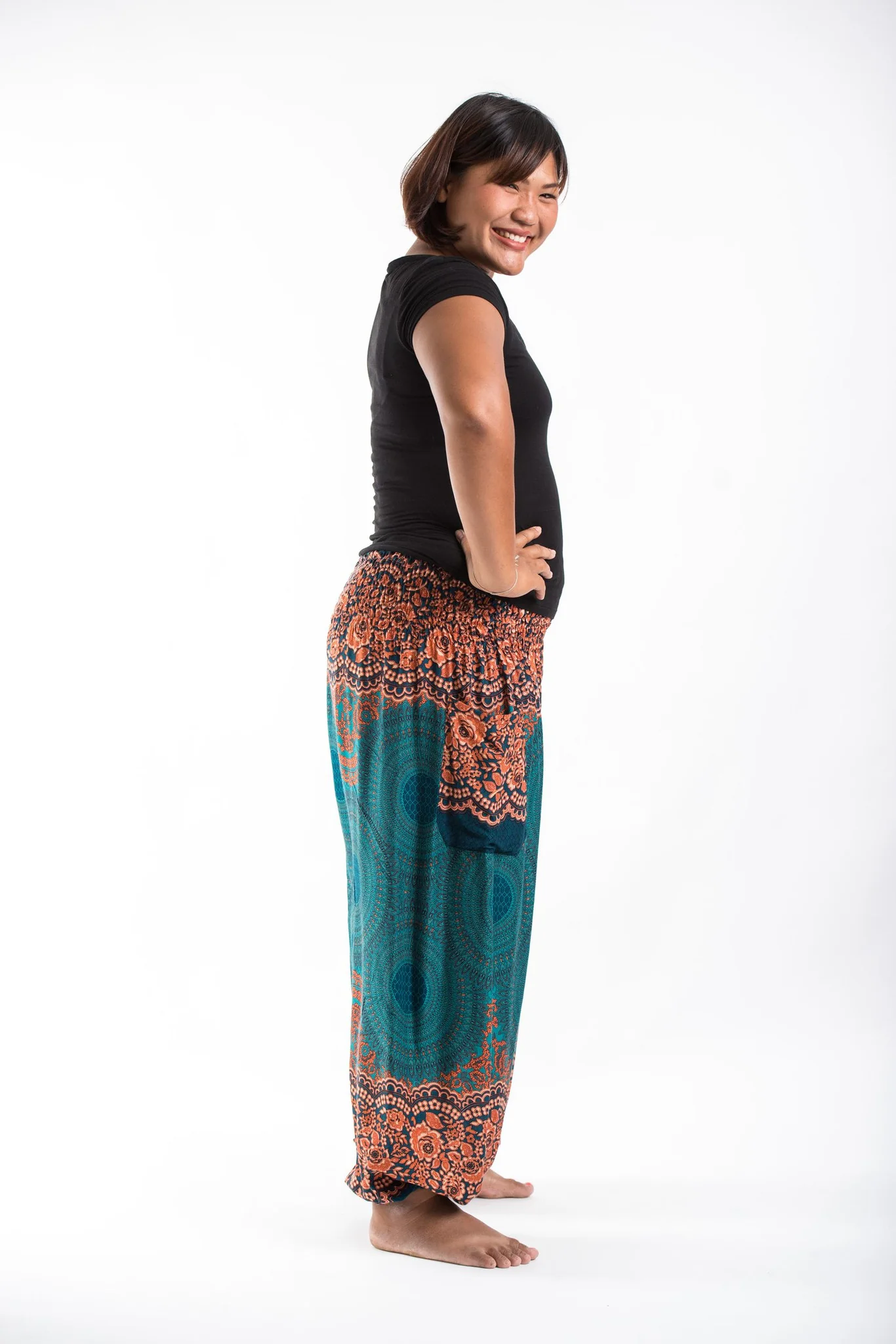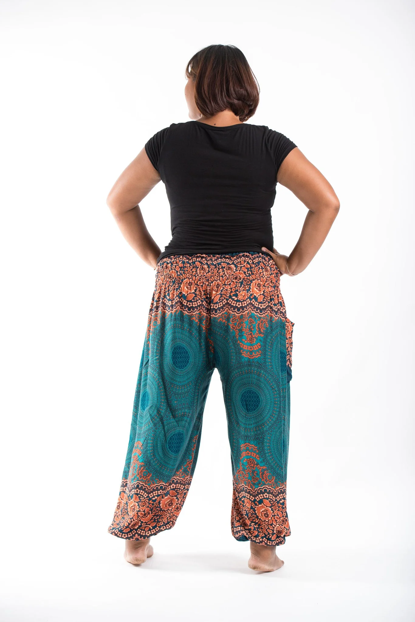 Plus Size Geometric Mandalas Women’s Harem Pants in Turquoise