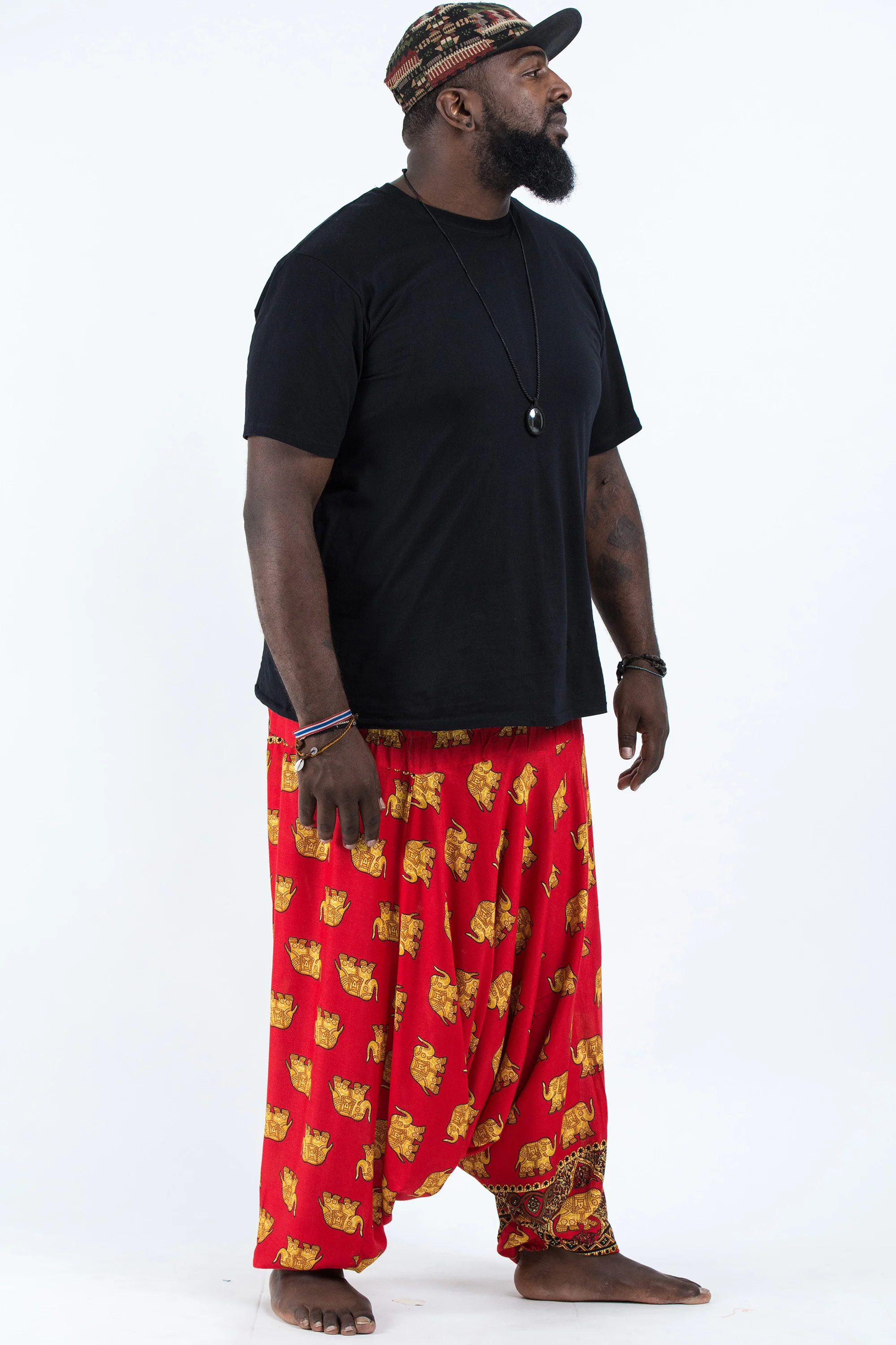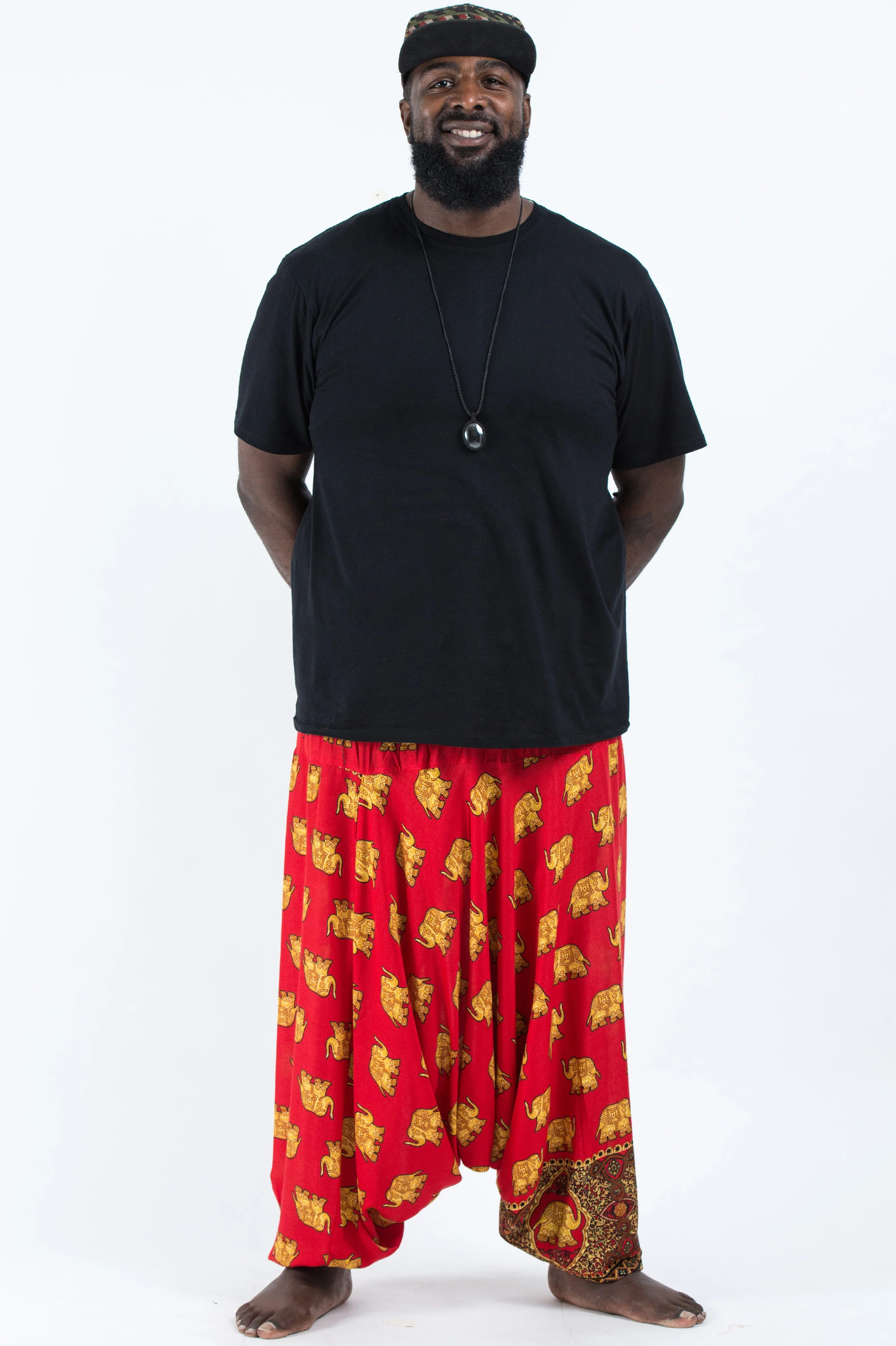 Plus Size Golden Elephant Drop Crotch Men’s Elephant Pants in Red