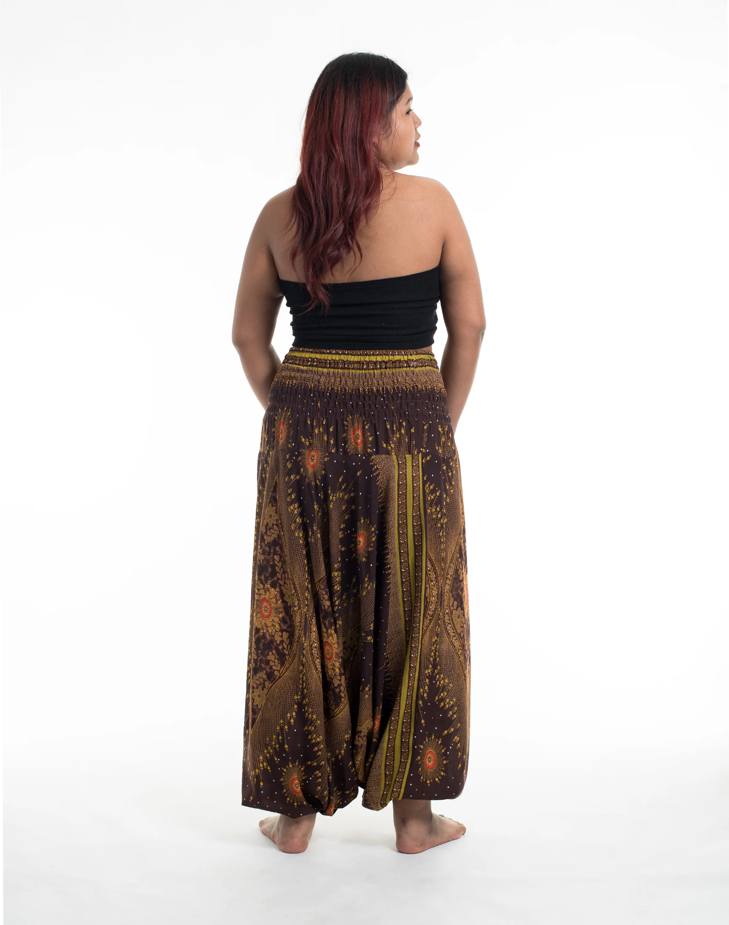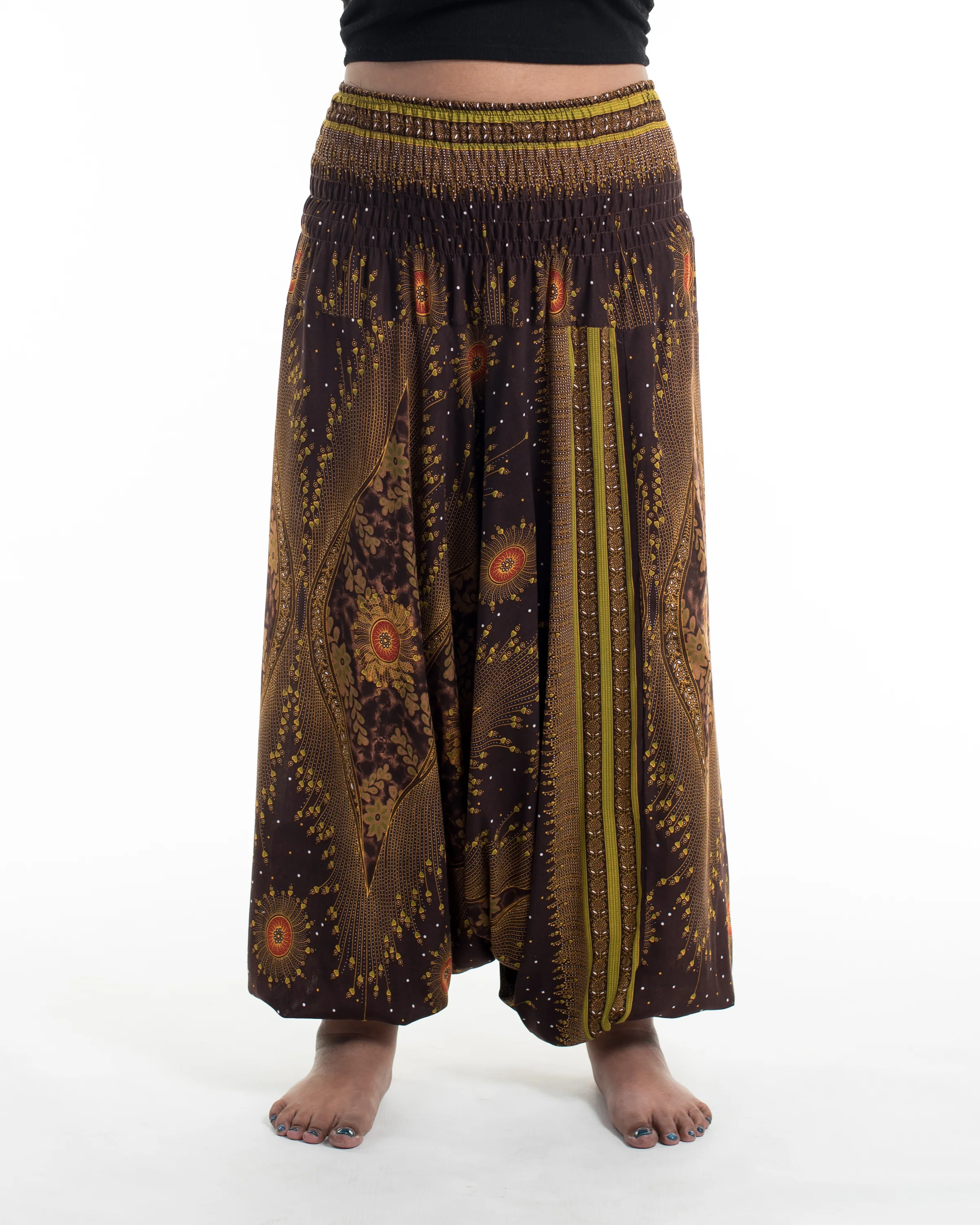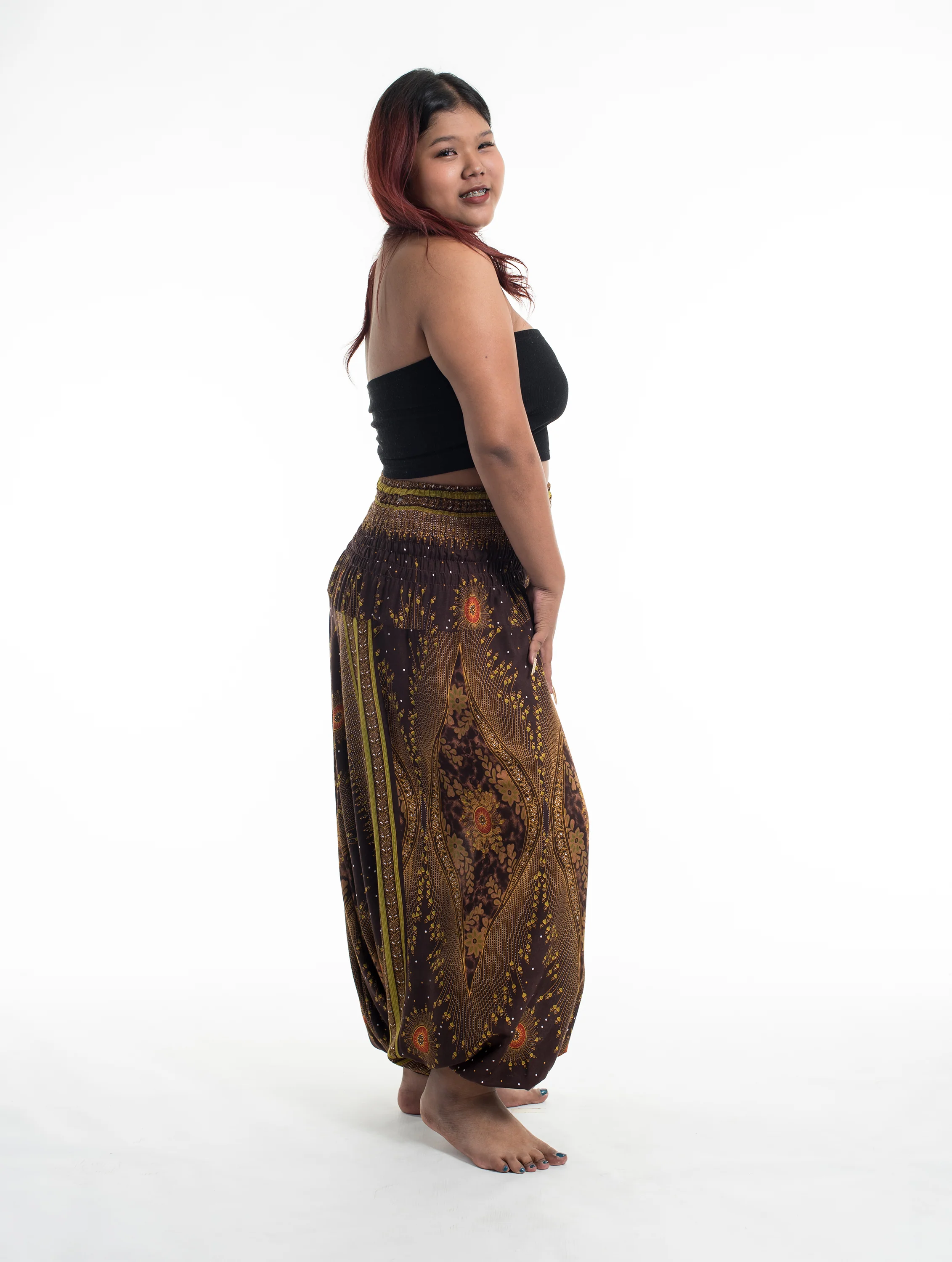 Plus Size Peacock Eyes 2-in-1 Jumpsuit Harem Pants in Brown