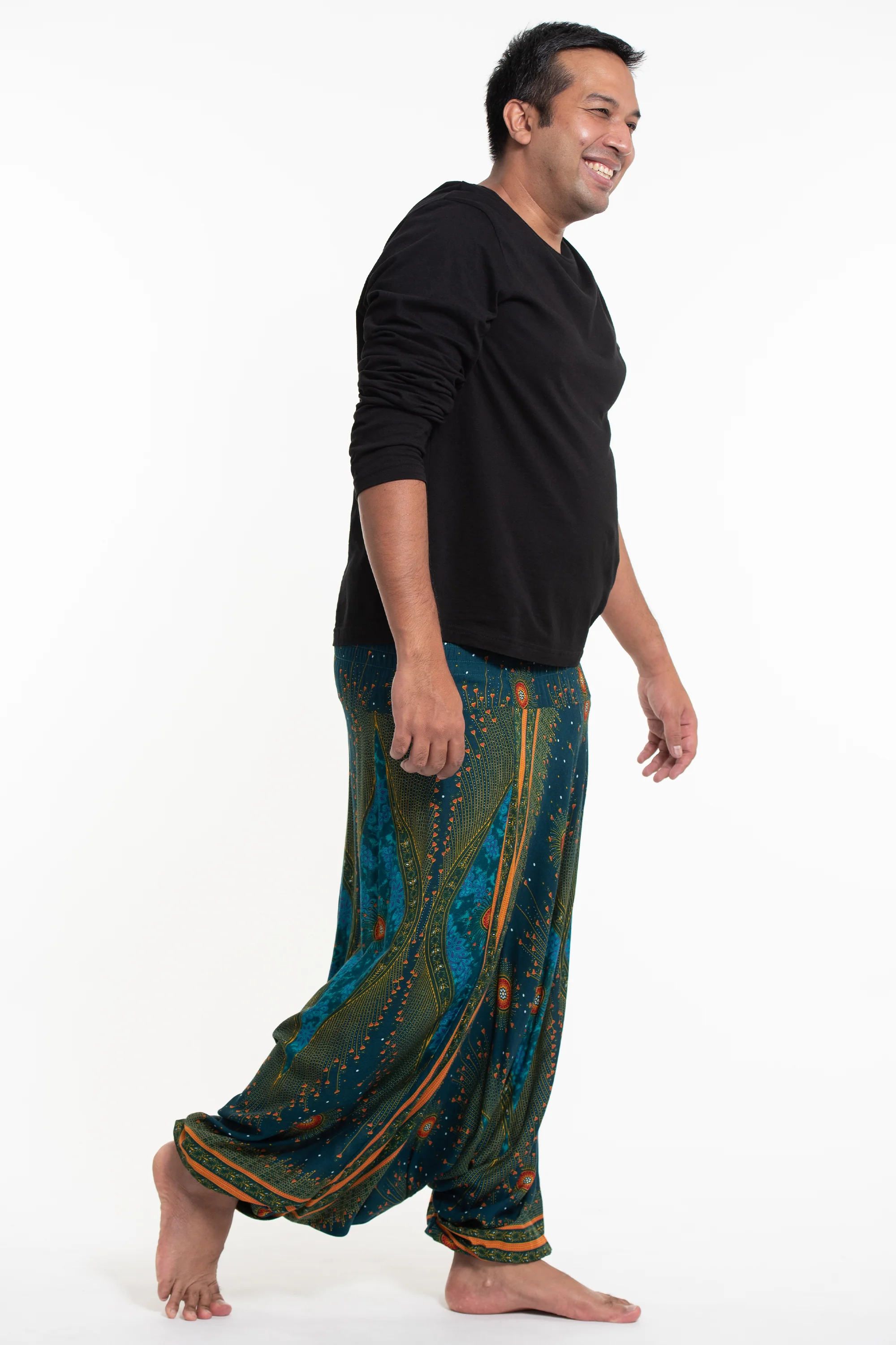 Plus Size Peacock Eyes Drop Crotch Men’s Harem Pants in Turquoise