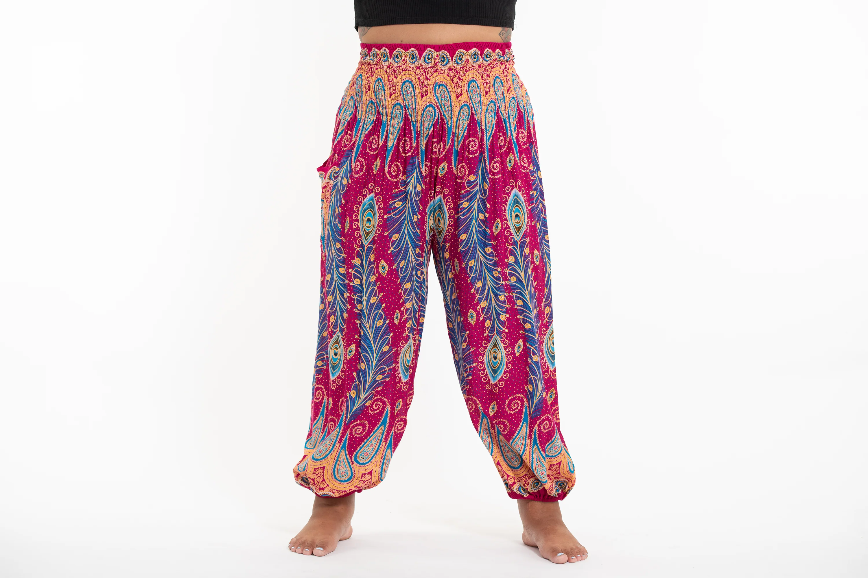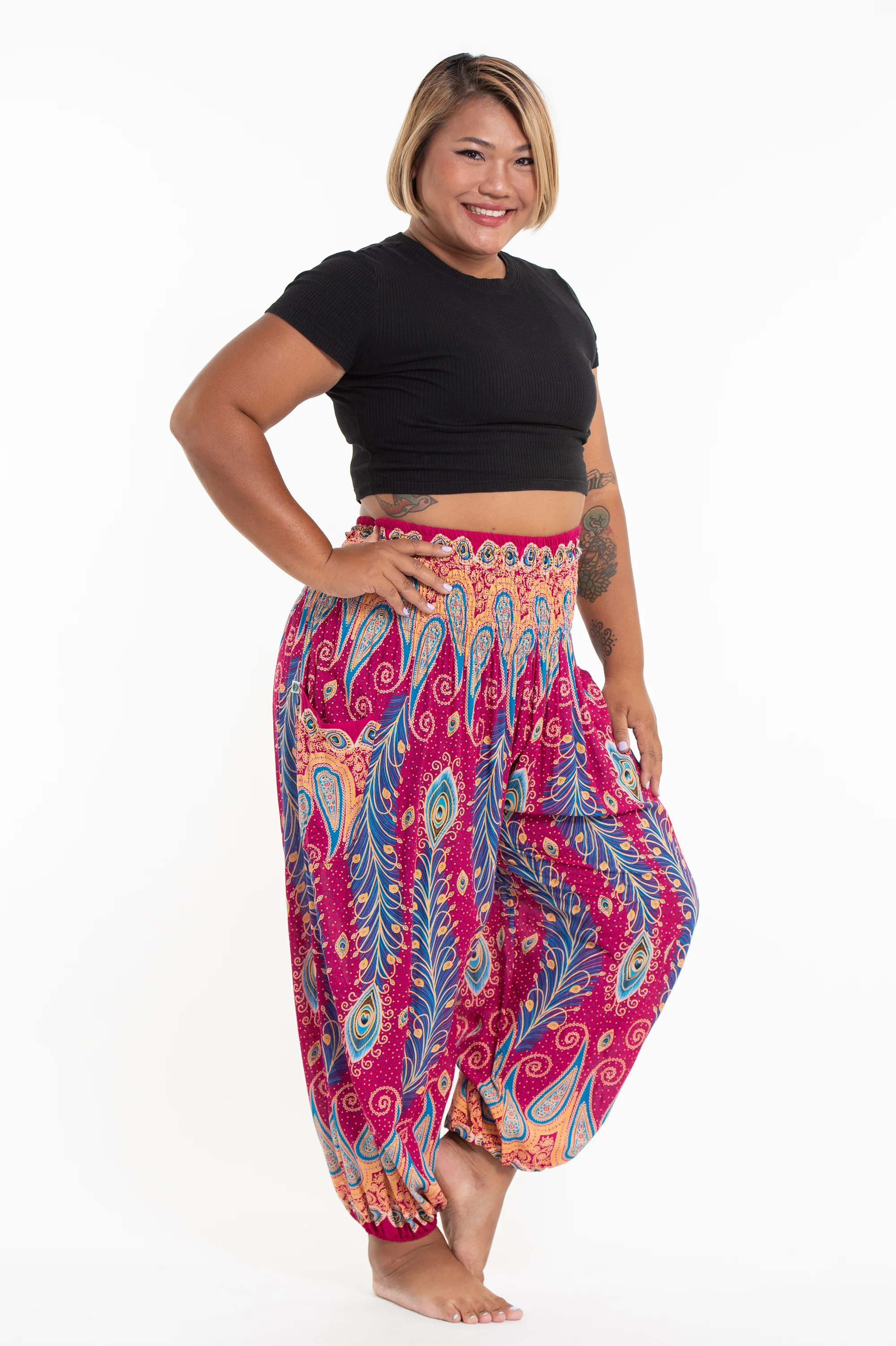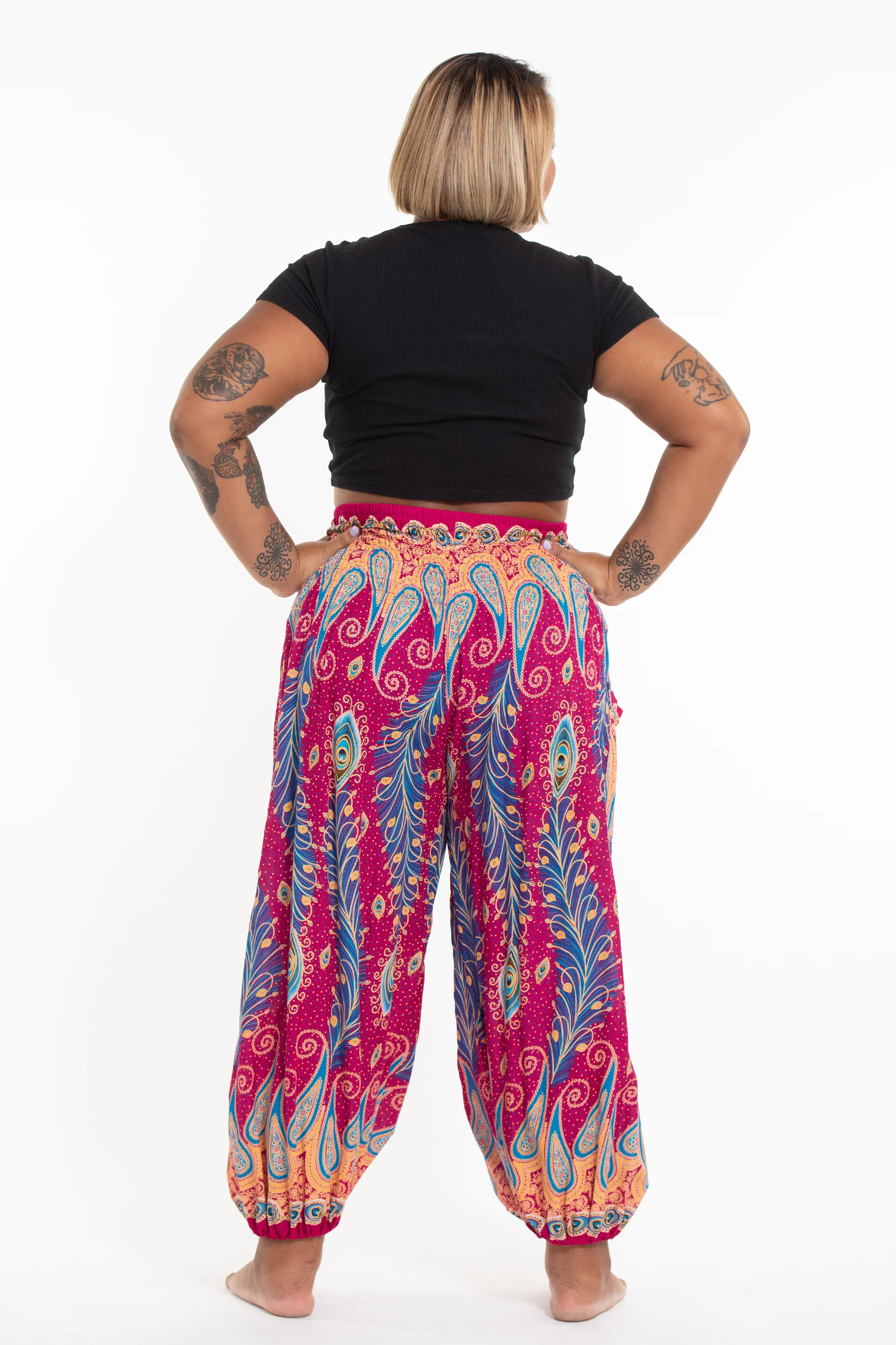 Plus Size Peacock Paisley Women’s Harem Pants in Pink