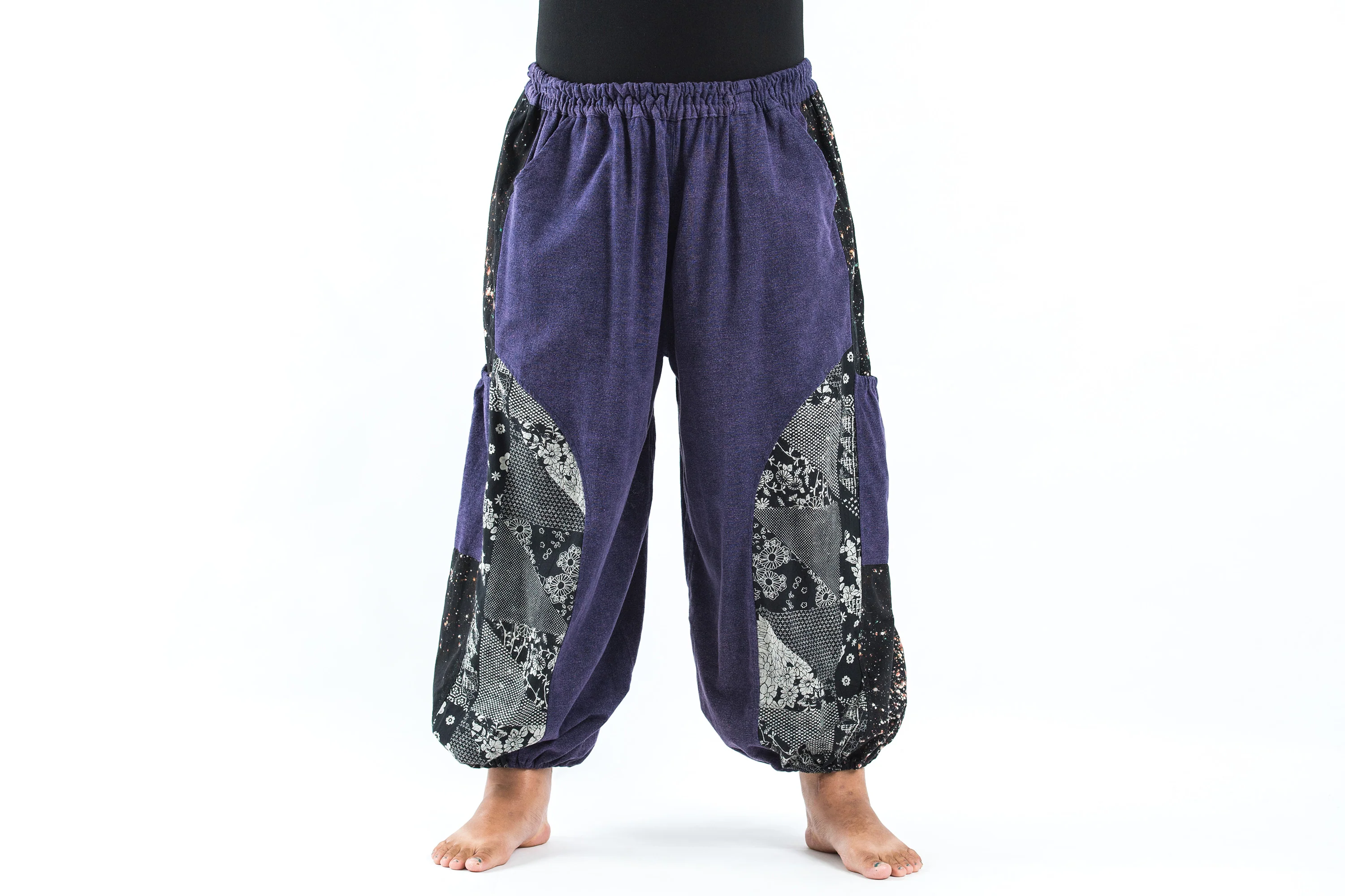 Stone Washed Patchwork Unisex Pants are super comfy and fun. Crafted with 100% Thai Cotton and Handmade Batik Cotton Patches. They can fit Medium body type to Plus Sizes. Elasticated waist can stretch up to 46″. They come with 4 pockets total.