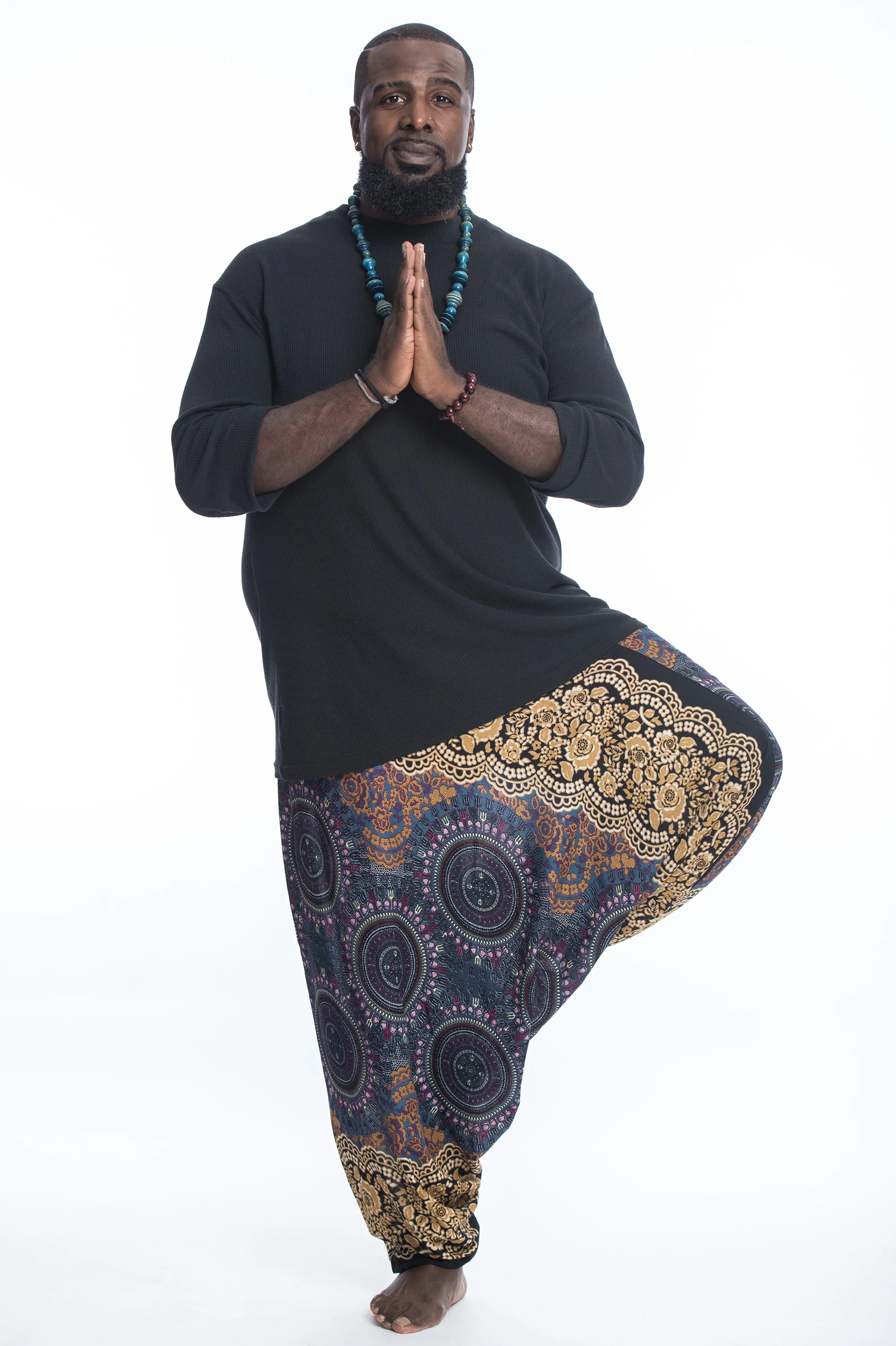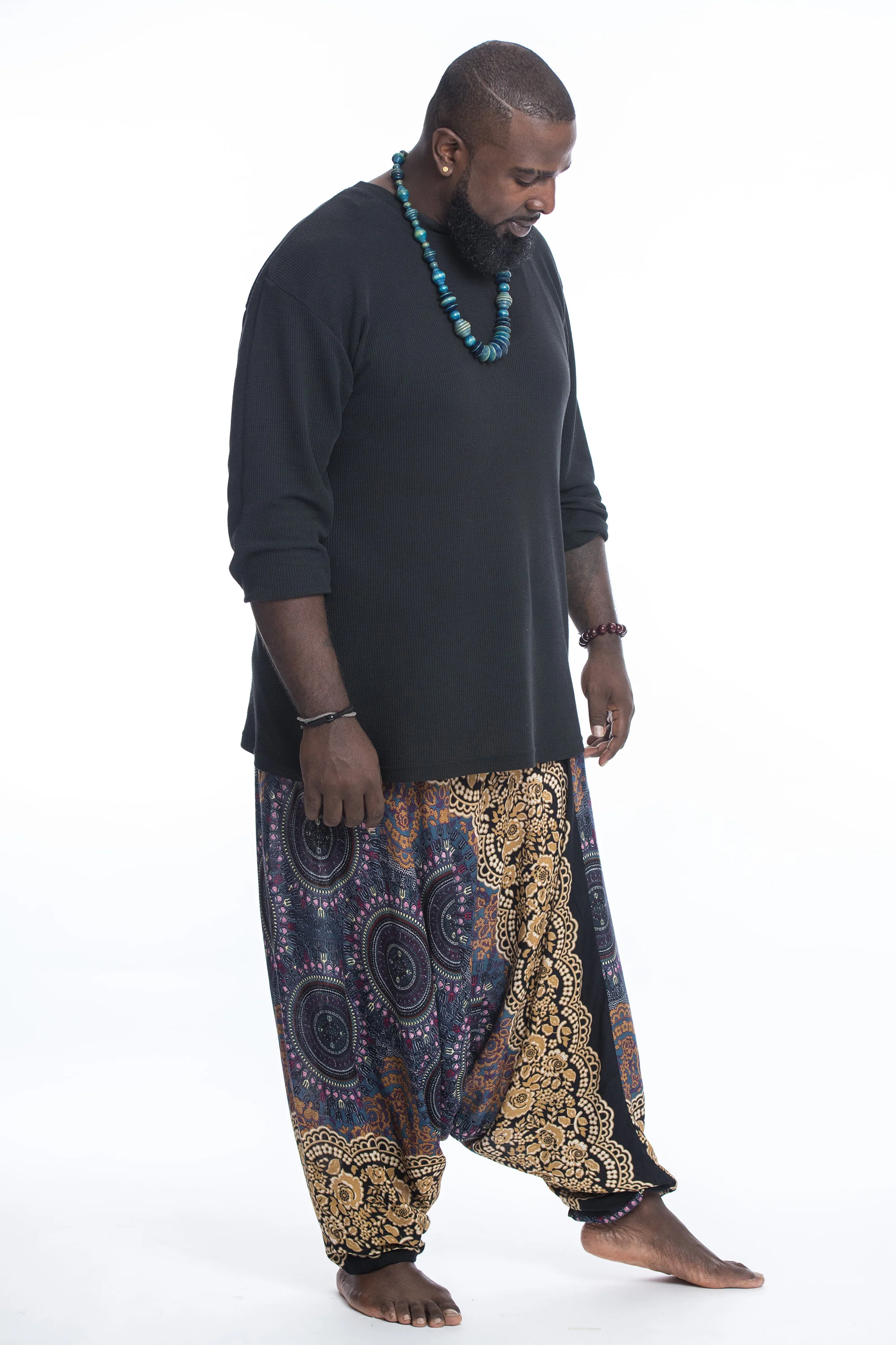 Plus Size Trishula Mandalas Drop Crotch Men’s Harem Pants in Gold