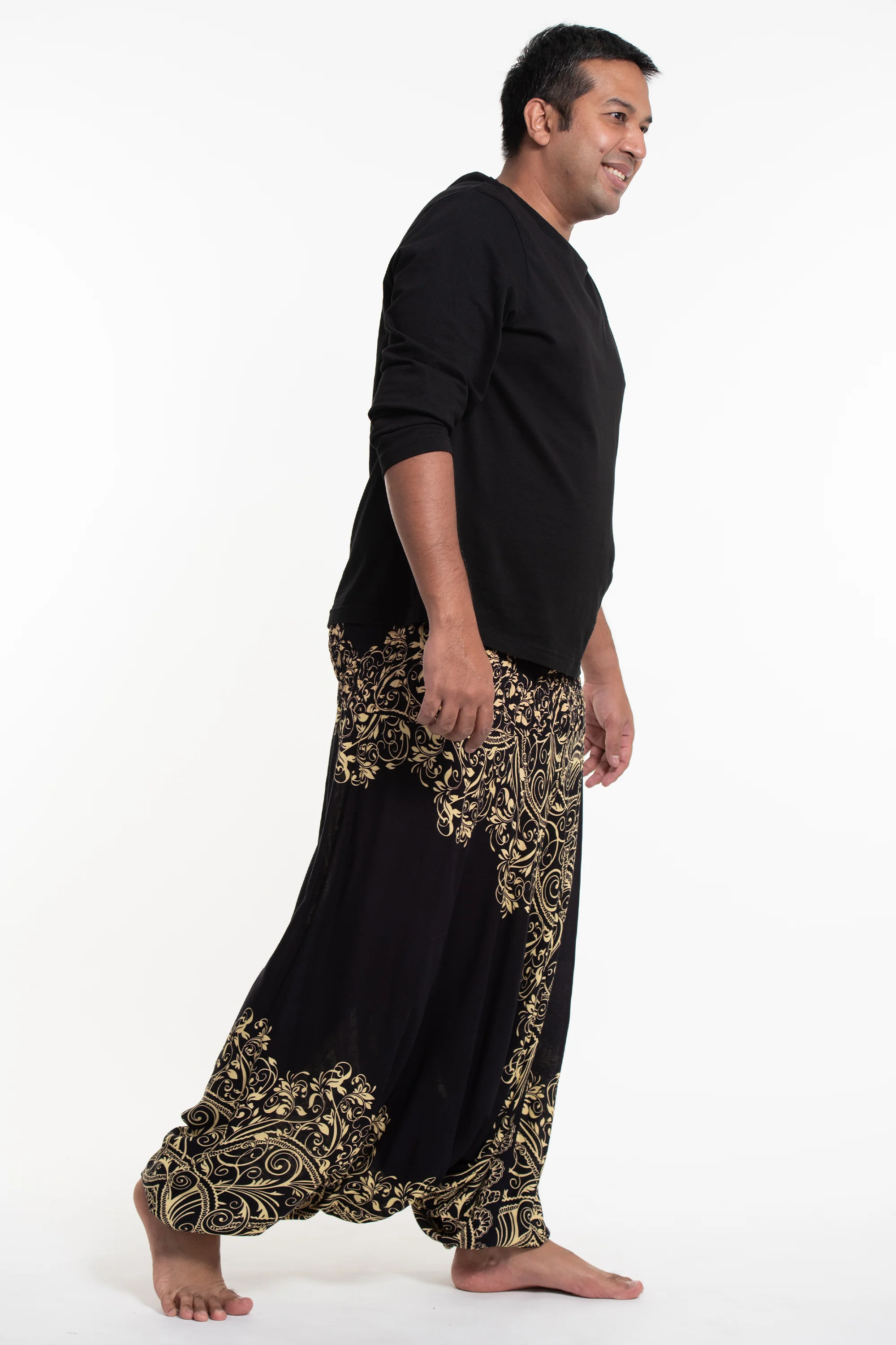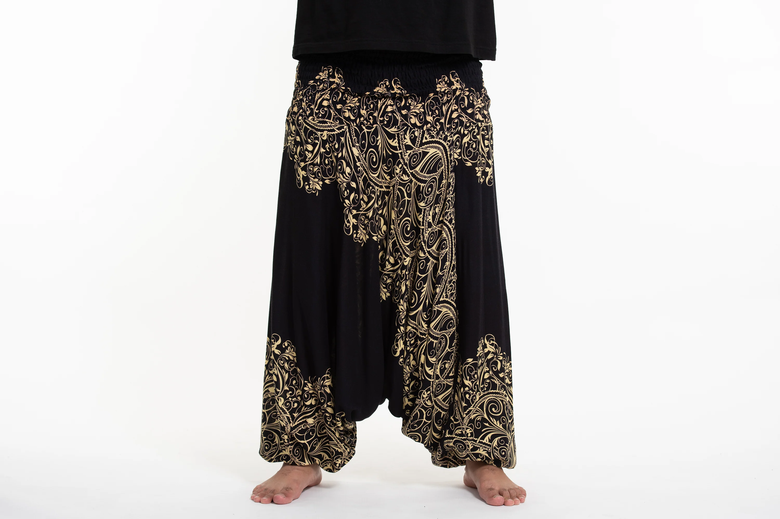 Plus Size Vines Drop Crotch Men’s Harem Pants in Black