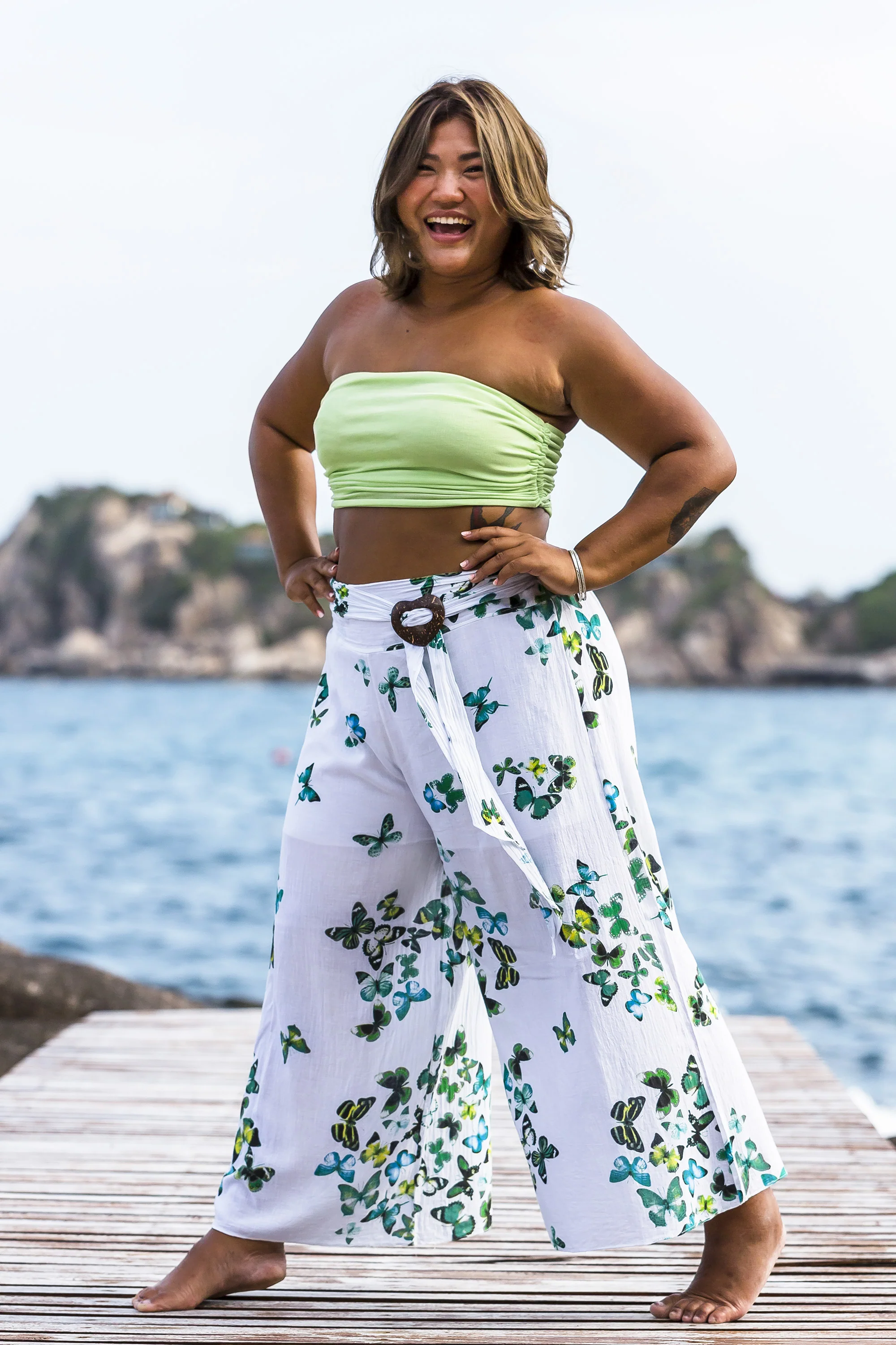 Plus Size Women’s Thai Harem Palazzo Pants in Butterflies Green