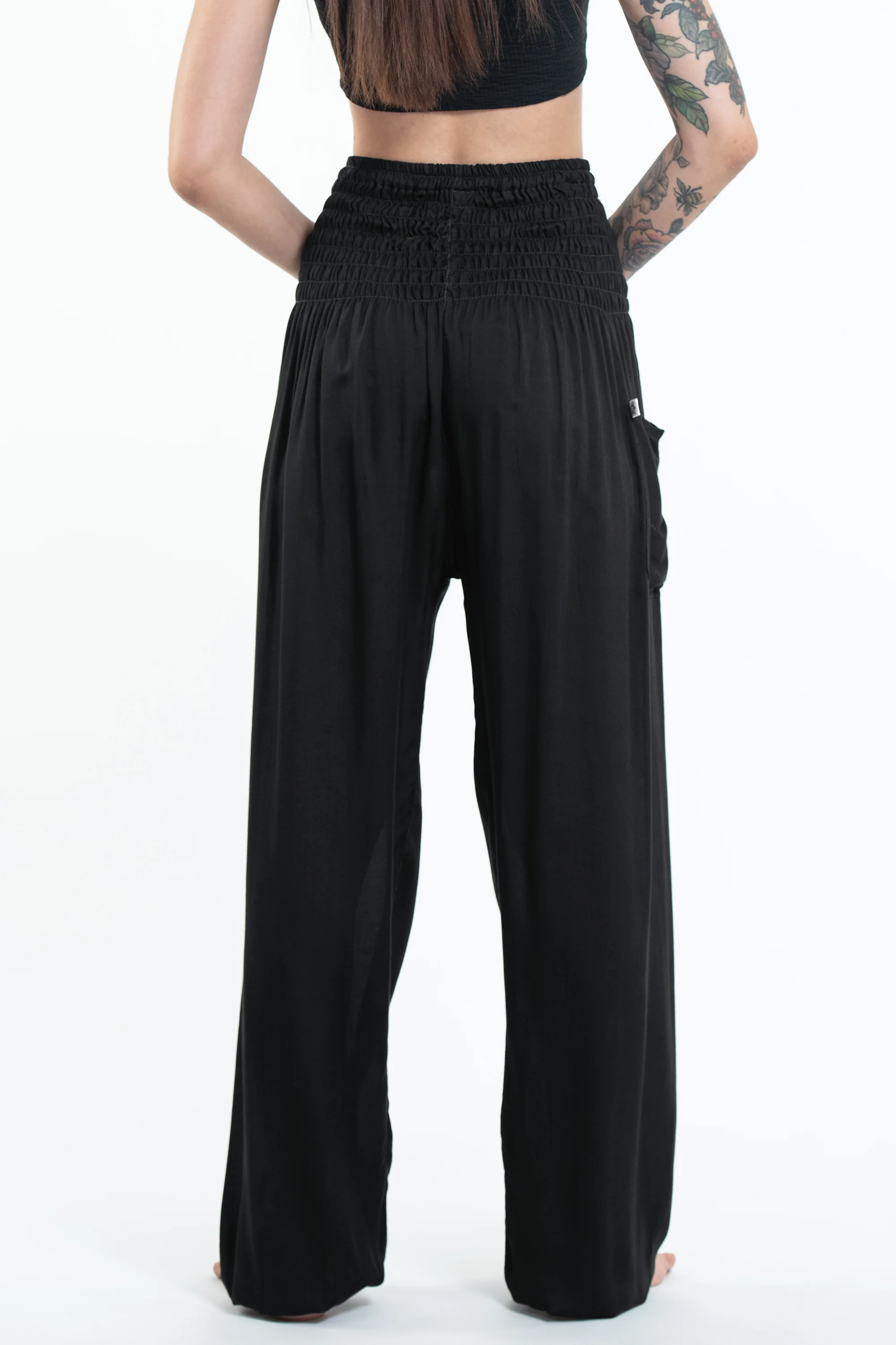 All these high cut gender neutral harem pants have comfy smocked waist and one side-pocket. Made with 100% eco rayon fabric.