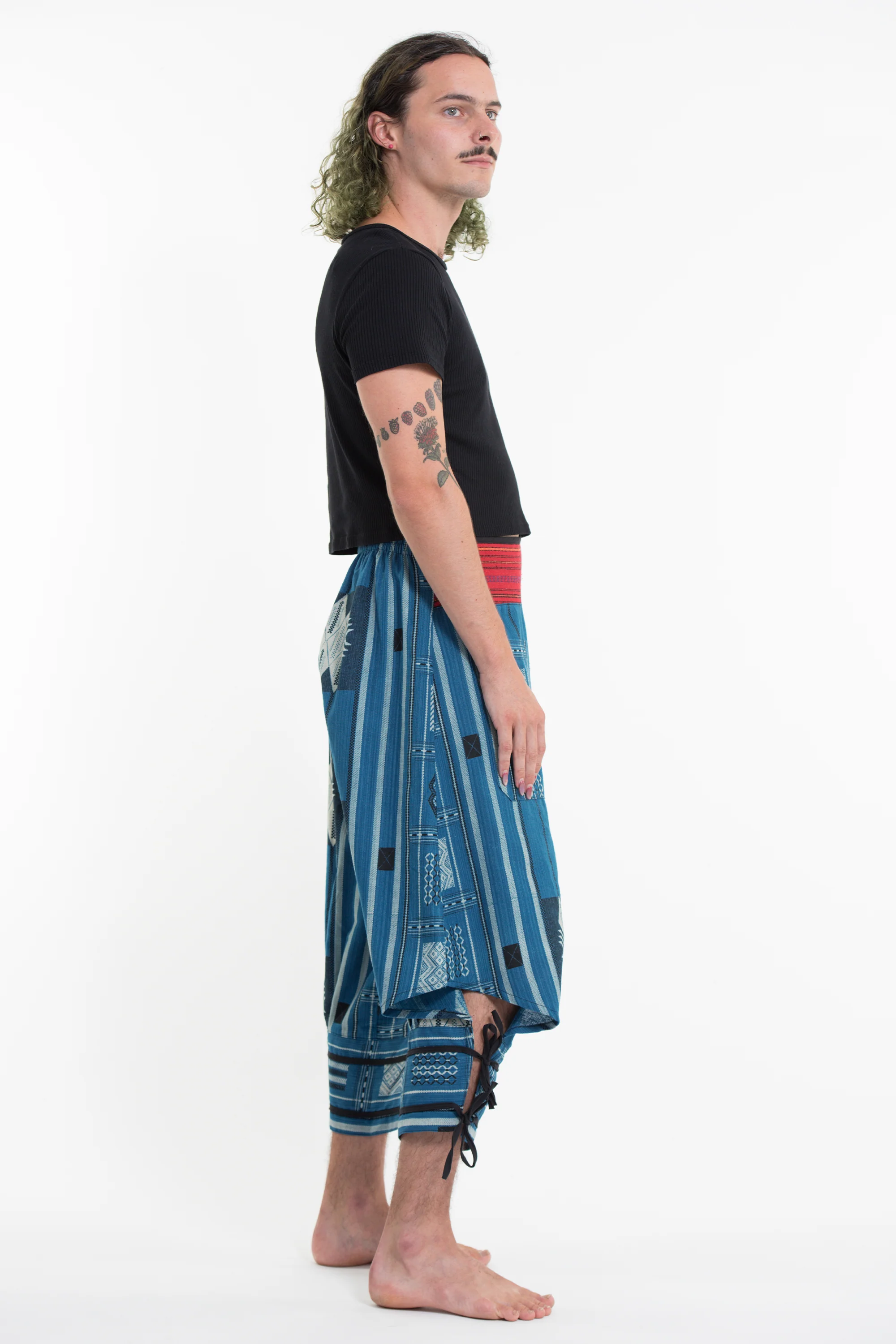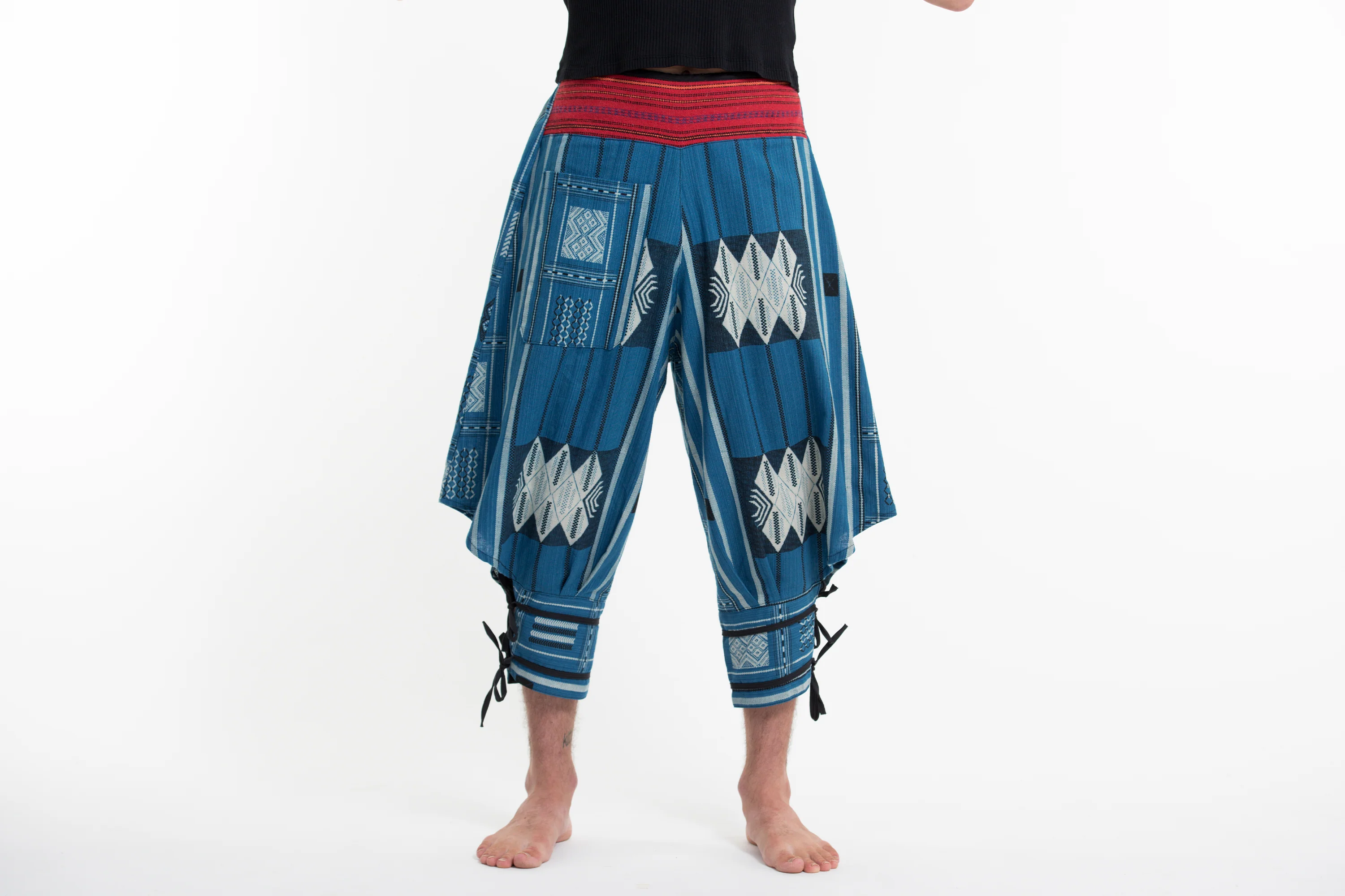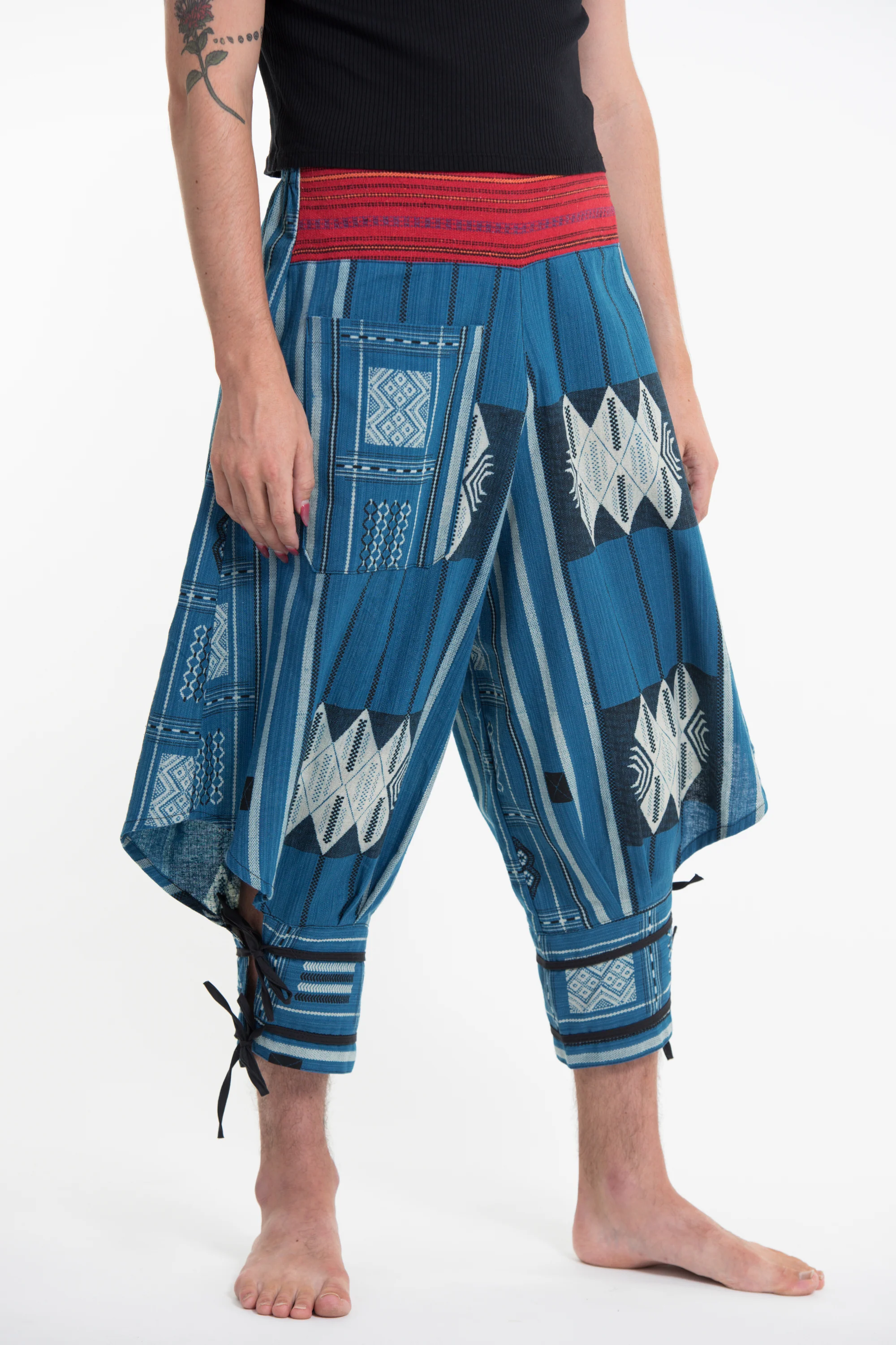 Thai Hill Tribe Fabric Men’s Harem Pants with Ankle Straps in Blue