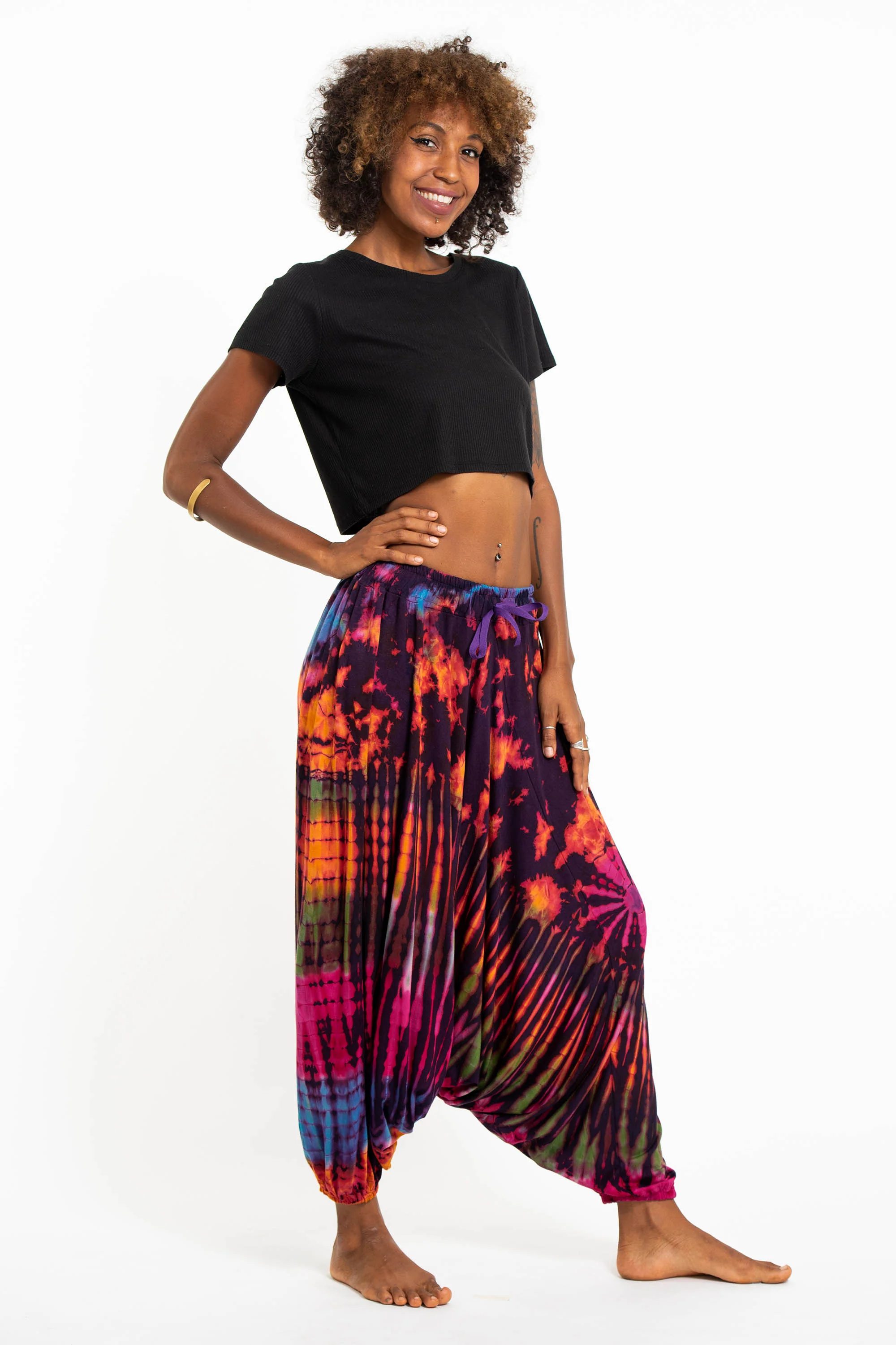 Tie Dye Women’s Spandex Cotton Low Cut Harem Pants in Purple