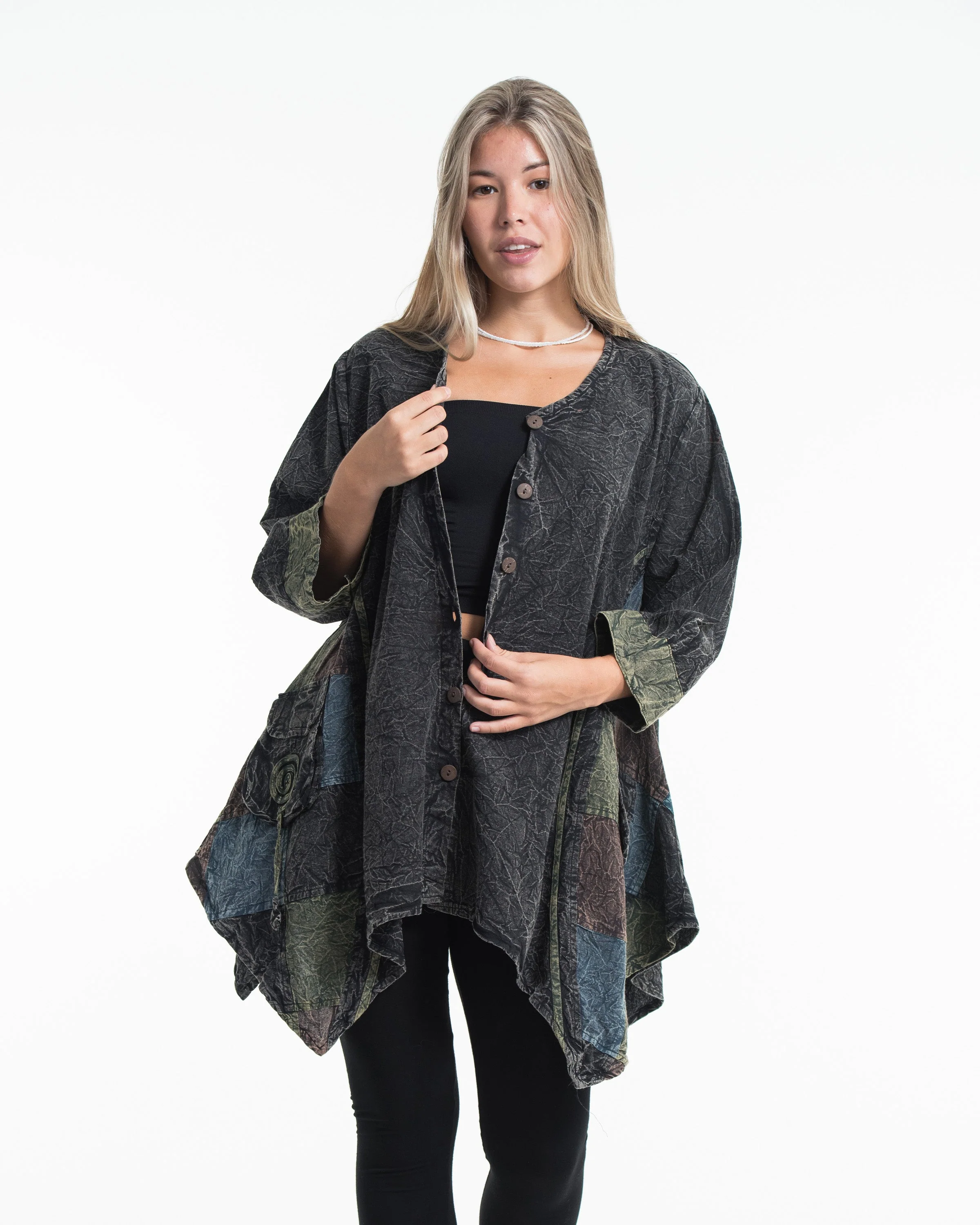 Unisex Patchwork Stonewashed Tunic Top in Black